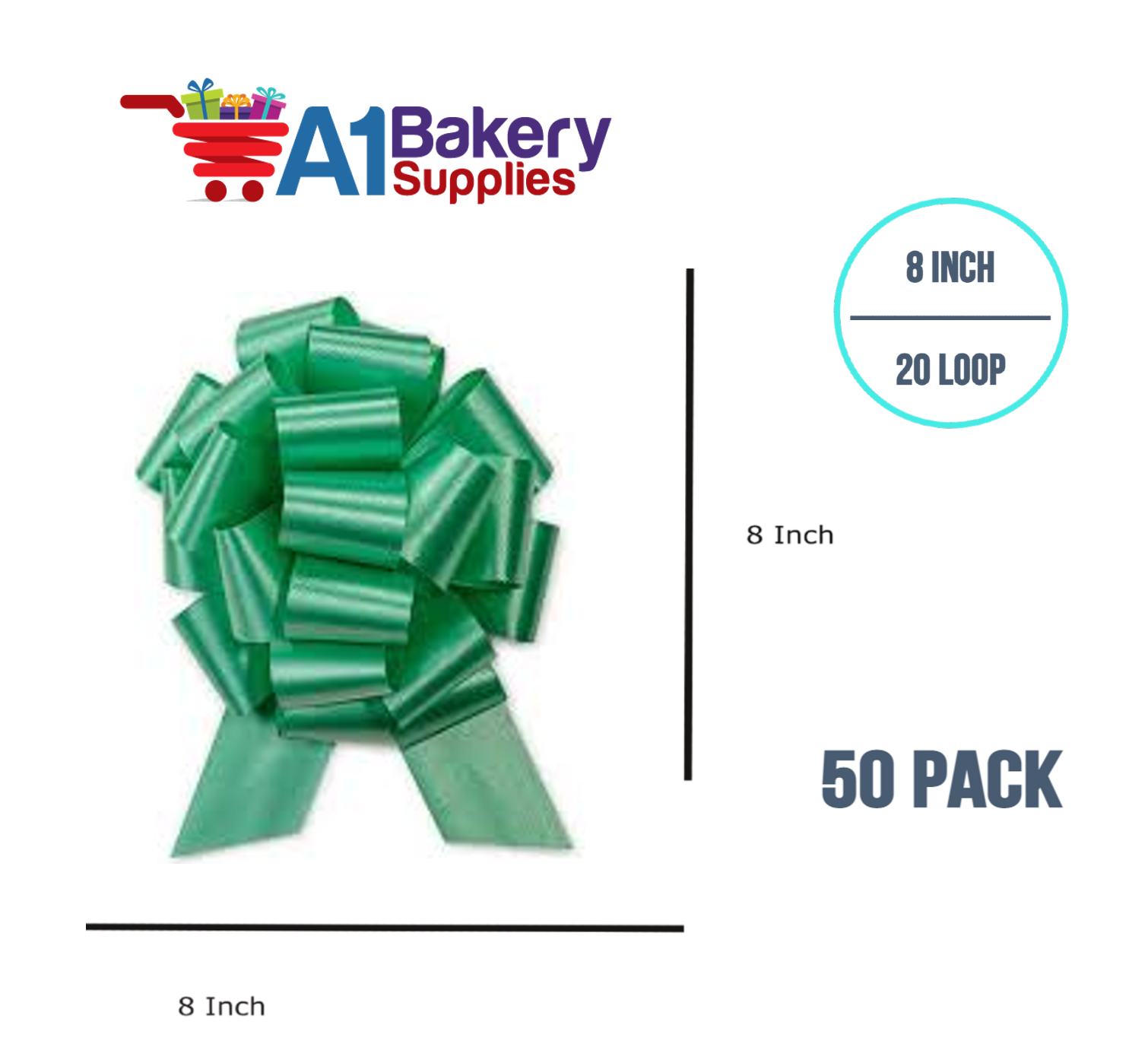 A1BakerySupplies 50 Pieces Pull Bow for Gift Wrapping Gift Bows Pull Bow With Ribbon for Wedding Gift Baskets, 8 Inch 20 Loop Emerald Green Flora Satin Color