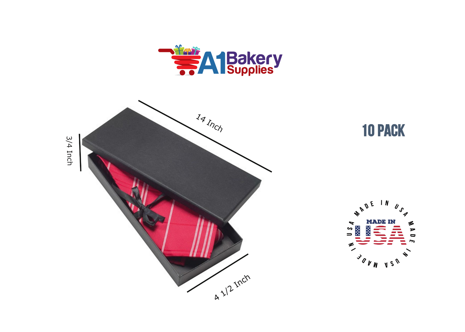 - Multiple Colors Available – A1 Bakery Supplies offers Gift Tie Boxes in Black Colors and White Colors. These Tie Boxes can be added with strings or Bows to make them memorable present