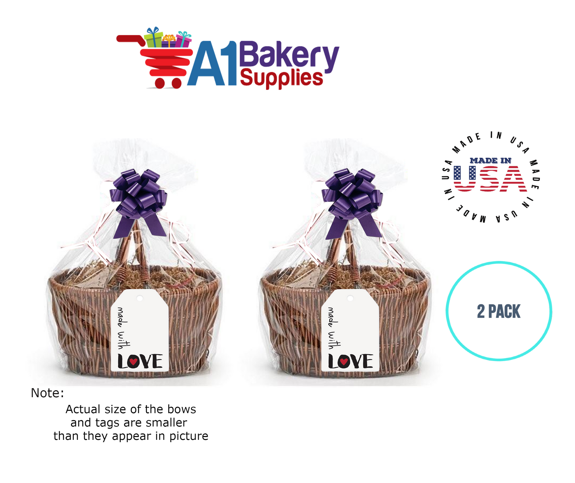 - In this order you will receive 2 purple bows , 2 thank you , 2 gift for you , 2 made with love tag and no gift basket is provided , it is only for the picture purpose and only cellophane bags are selling .