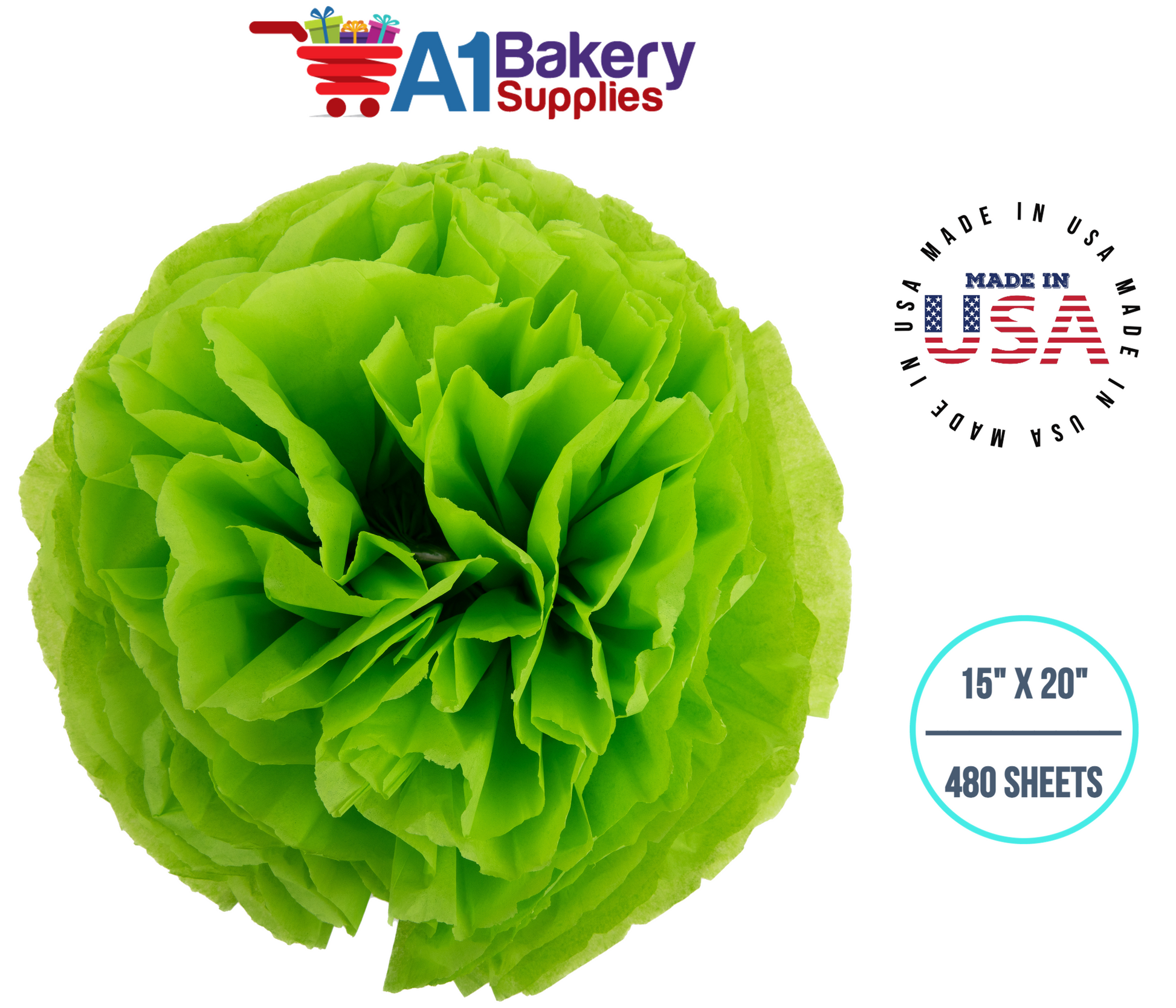 Bright Lime Tissue Paper Squares, Bulk 480 Sheets, Premium Gift Wrap and Art Supplies for Birthdays, Holidays, or Presents by A1BakerySupplies, Large 15 Inch x 20 Inch