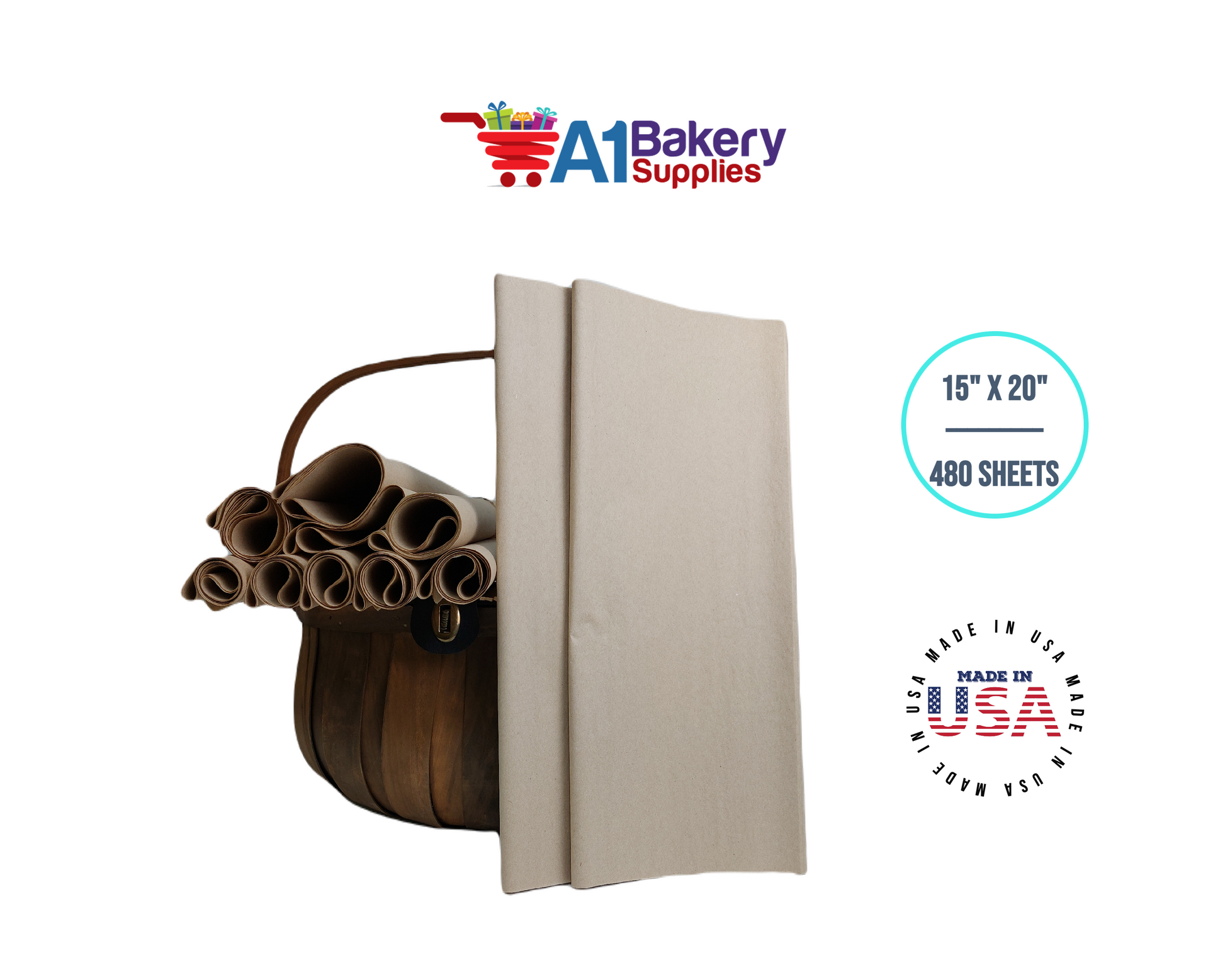 Desert Tan Tissue Paper Squares, Bulk 480 Sheets, Premium Gift Wrap and Art Supplies for Birthdays, Holidays, or Presents by A1BakerySupplies, Large 15 Inch x 20 Inch