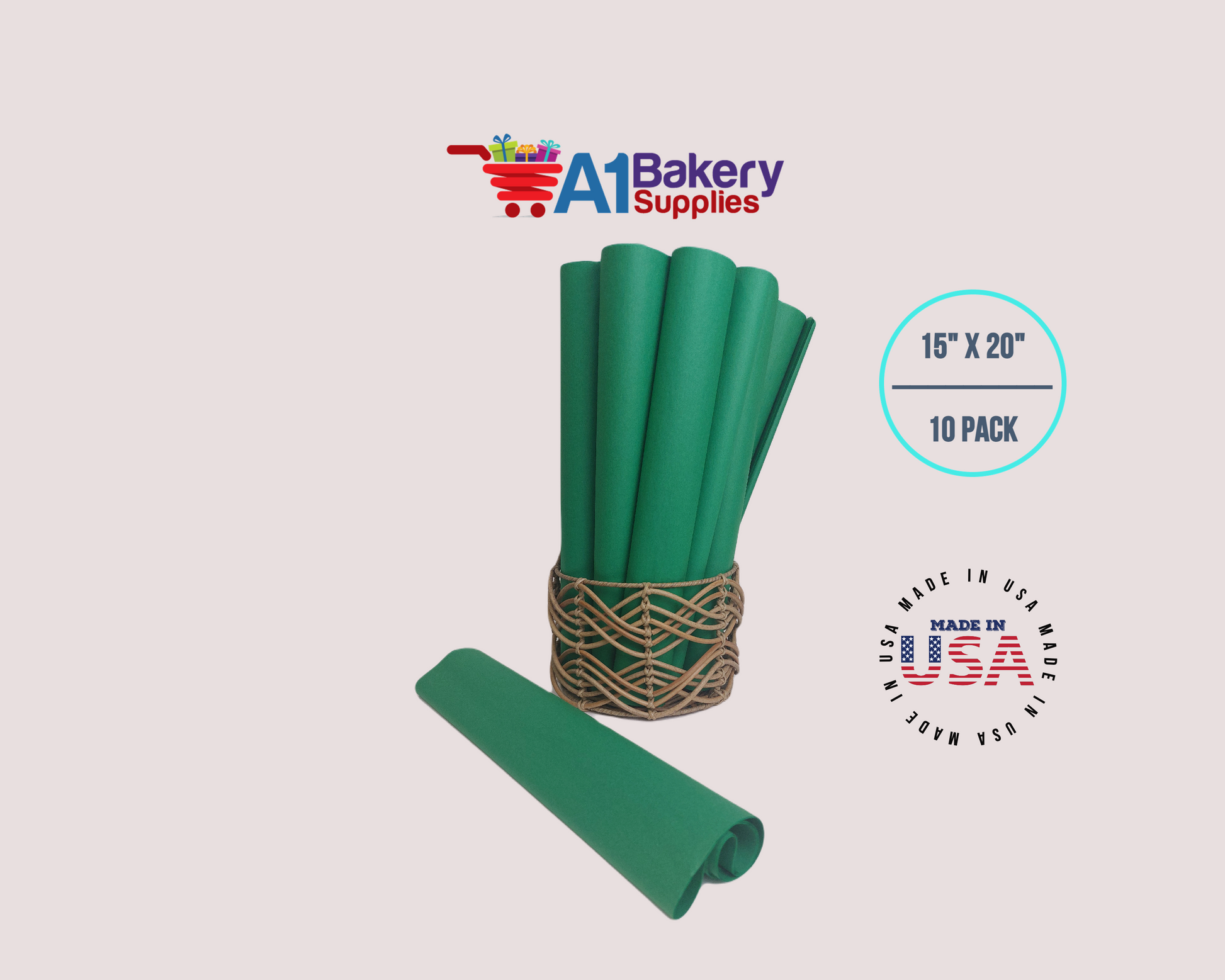 Festive Gren Tissue Paper Squares, Bulk 10 Sheets, Premium Gift Wrap and Art Supplies for Birthdays, Holidays, or Presents by A1BakerySupplies, Large 15 Inch x 20 Inch