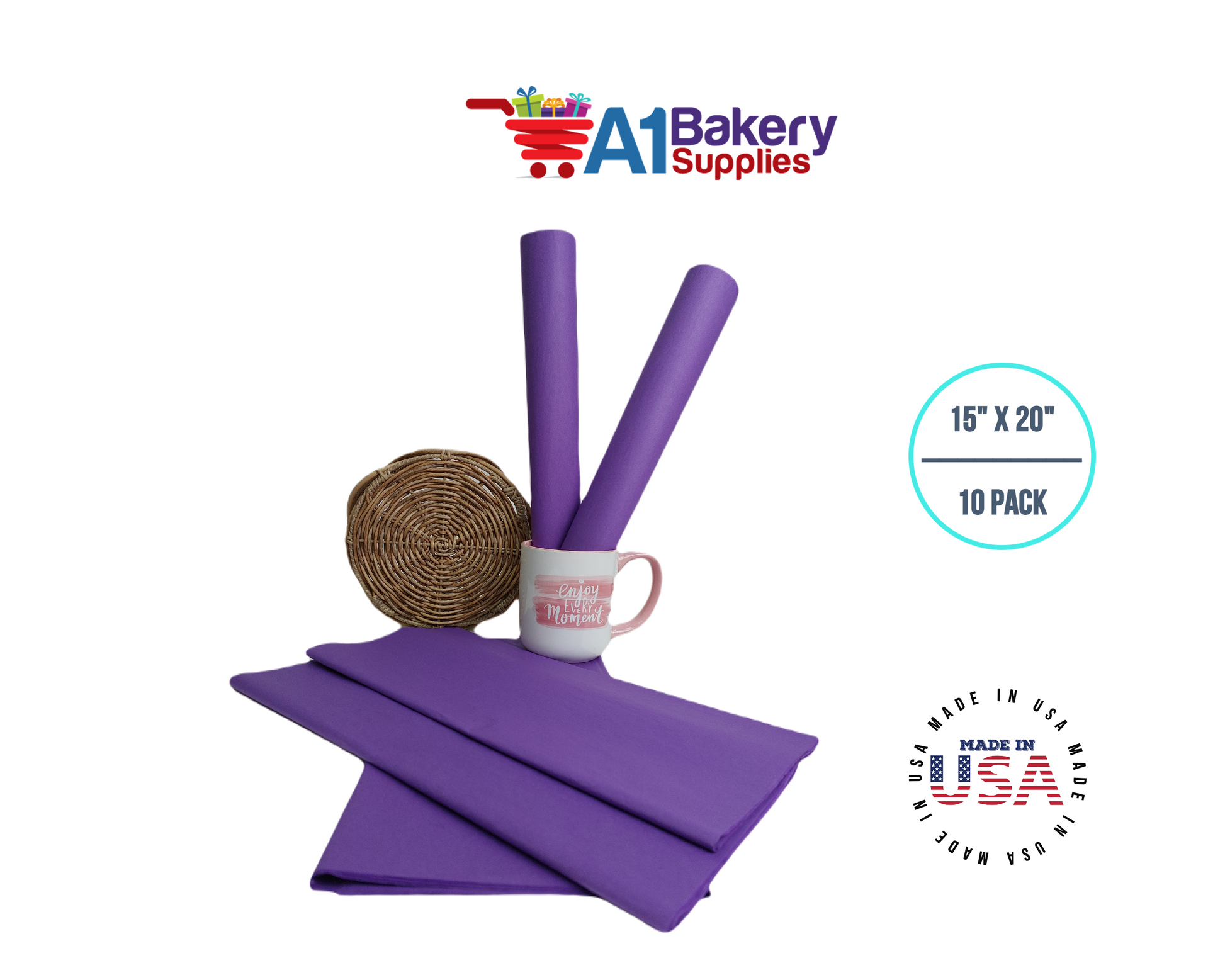 Lavender Tissue Paper Squares, Bulk 10 Sheets, Premium Gift Wrap and Art Supplies for Birthdays, Holidays, or Presents by A1BakerySupplies, Small 15 Inch x 20 Inch