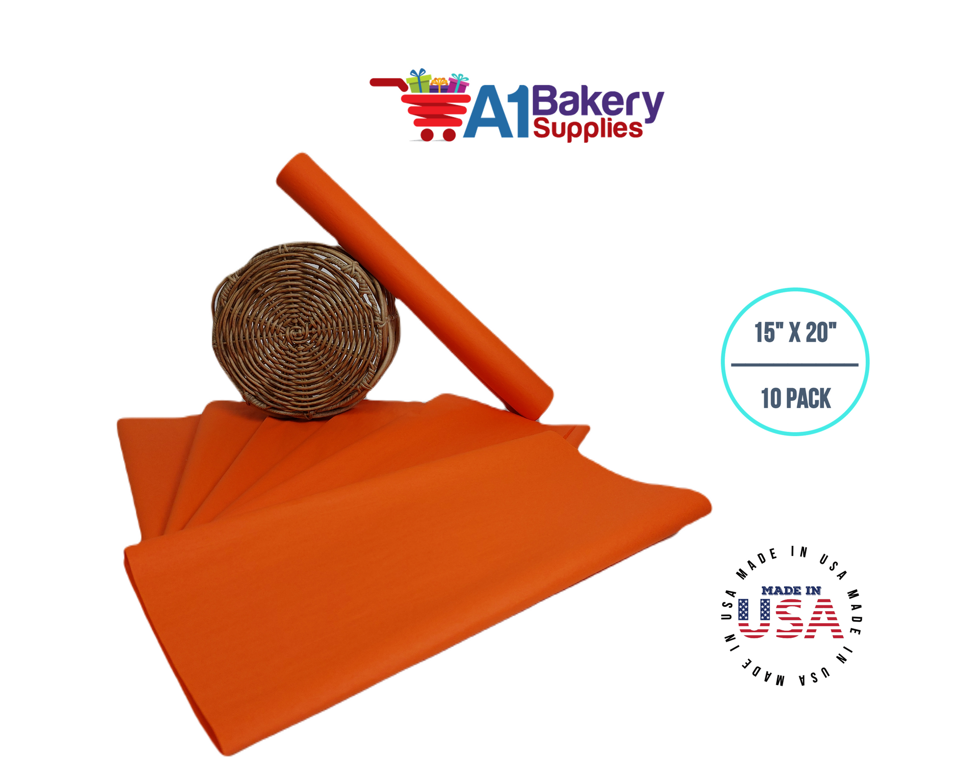 Orange Tissue Paper Squares, Bulk 10 Sheets, Premium Gift Wrap and Art Supplies for Birthdays, Holidays, or Presents by A1BakerySupplies, Large 15 Inch x 20 Inch