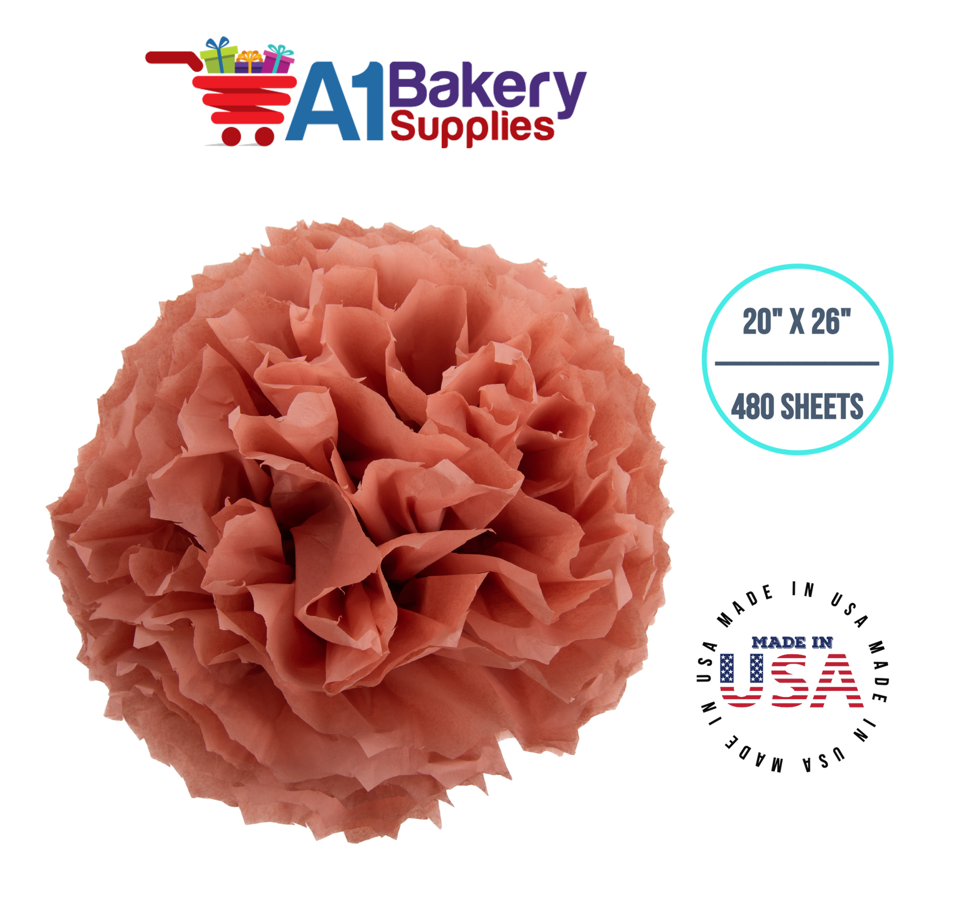 Terra Cotta Tissue Paper Squares Bulk 480 Sheets Premium Gift Wrap and Art Supplies for Birthdays Holidays or Presents by A1 Bakery Supplies Large 20 Inch x 26 Inch