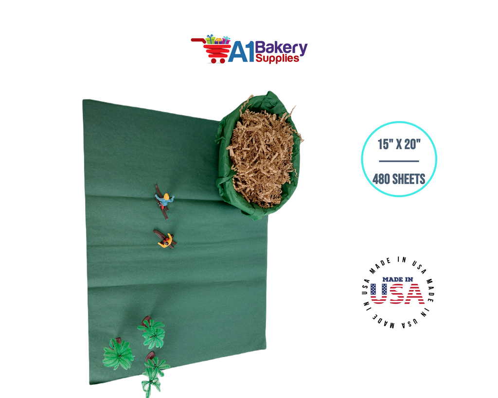 Forest Green Tissue Paper Squares, Bulk 480 Sheets, Premium Gift Wrap and Art Supplies for Birthdays, Holidays, or Presents by A1BakerySupplies, Large 15 Inch x 20 Inch