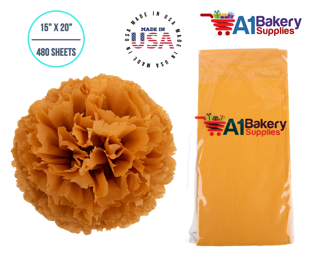 Goldenrod Tissue Paper Squares, Bulk 480 Sheets, Premium Gift Wrap and Art Supplies for Birthdays, Holidays, or Presents by A1BakerySupplies, Large 15 Inch x 20 Inch