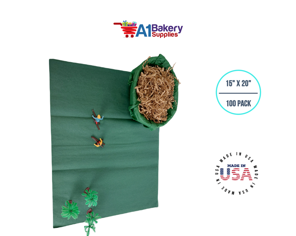 Forest Green Tissue Paper Squares, Bulk 100 Sheets, Premium Gift Wrap and Art Supplies for Birthdays, Holidays, or Presents by A1BakerySupplies, Large 15 Inch x 20 Inch