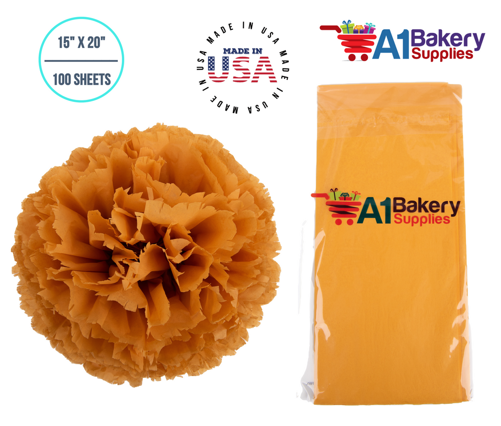 Goldenrod Tissue Paper Squares, Bulk 100 Sheets, Premium Gift Wrap and Art Supplies for Birthdays, Holidays, or Presents by A1BakerySupplies, Medium 15 Inch x 20 Inch