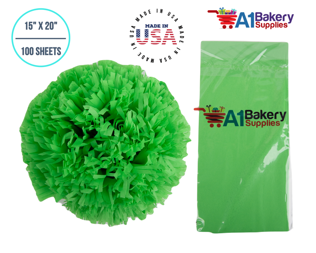 Groovy Green Tissue Paper Squares, Bulk 100 Sheets, Premium Gift Wrap and Art Supplies for Birthdays, Holidays, or Presents by A1BakerySupplies, Medium 15 Inch x 20 Inch