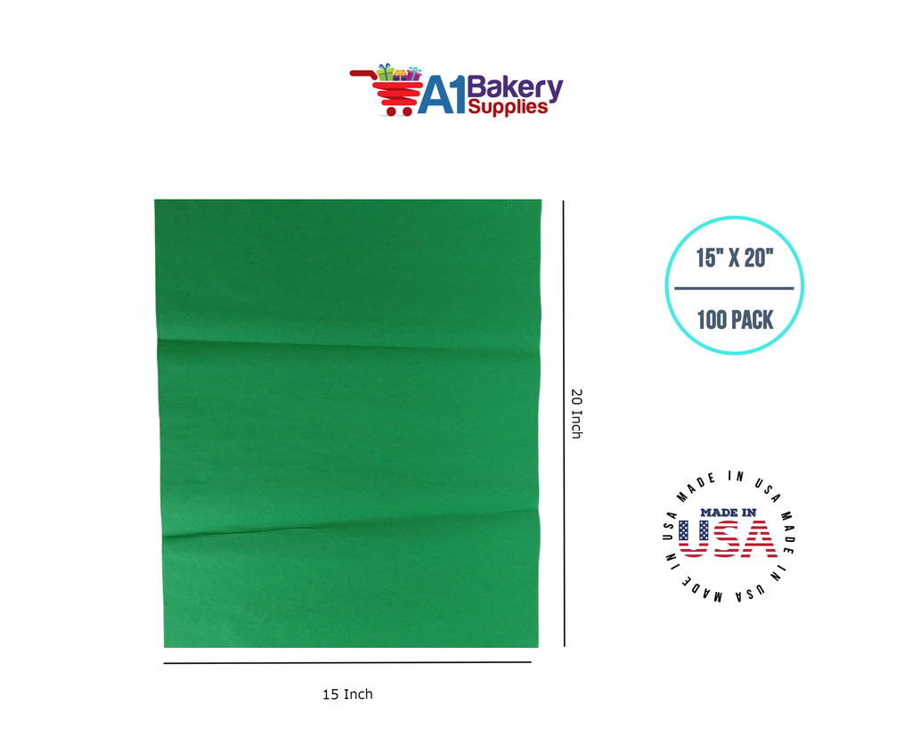 Kelly Green Tissue Paper Squares, Bulk 100 Sheets, Premium Gift Wrap and Art Supplies for Birthdays, Holidays, or Presents by A1BakerySupplies, Large 15 Inch x 20 Inch