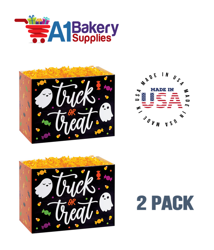 - Our Trick or Treat gift box design is ideal for creating Halloween gift baskets filled with candy, chocolates, cookies and other goodies.