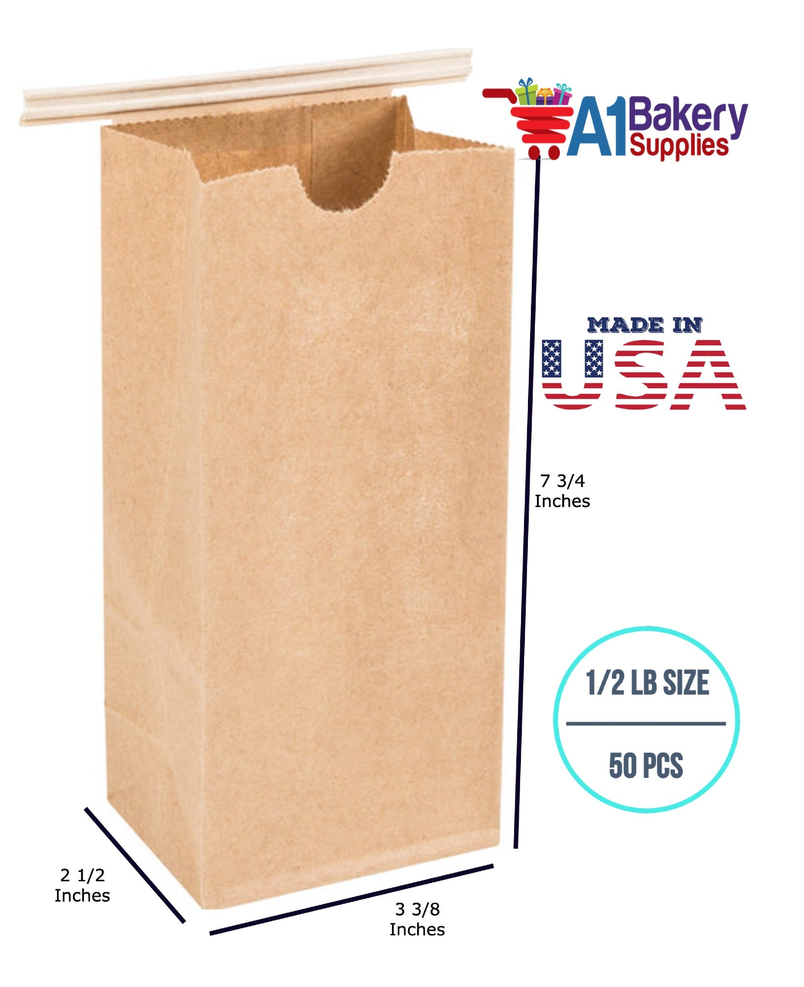 1/2 LB Size Brown No Window Tin Tie Bags 50 PCS Kraft Bakery Bags with No Window Resealable Tin Tie Tab Lock Poly-Lined Bags Kraft Paper Bags for Cookies, Coffee