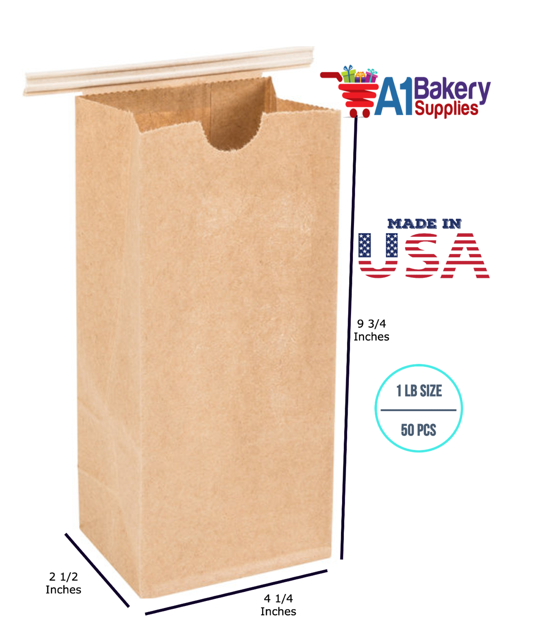 1 LB Size Brown No Window Tin Tie Bags 50 PCS Kraft Bakery Bags with No Window Resealable Tin Tie Tab Lock Poly-Lined Bags Kraft Paper Bags for Cookies, Coffee