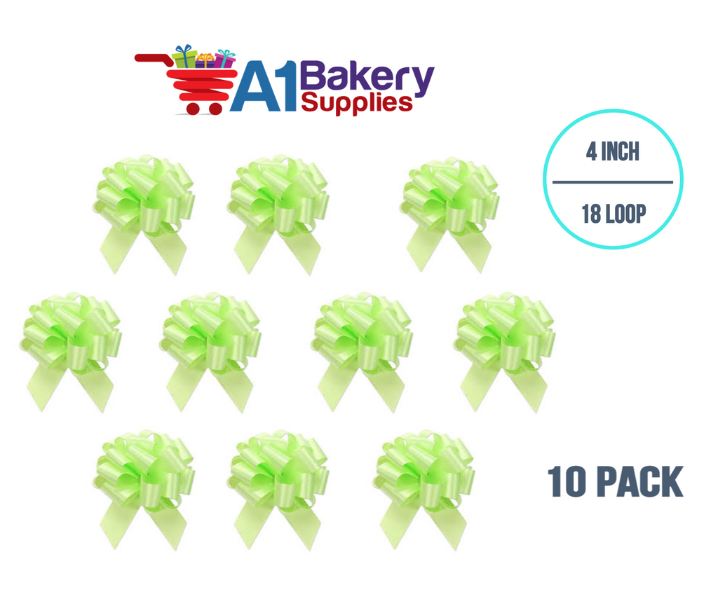 A1BakerySupplies 10 Pieces Pull Bow for Gift Wrapping Gift Bows Pull Bow With Ribbon for Wedding Gift Baskets, 4 Inch 18 Loop Celery Flora Satin Color