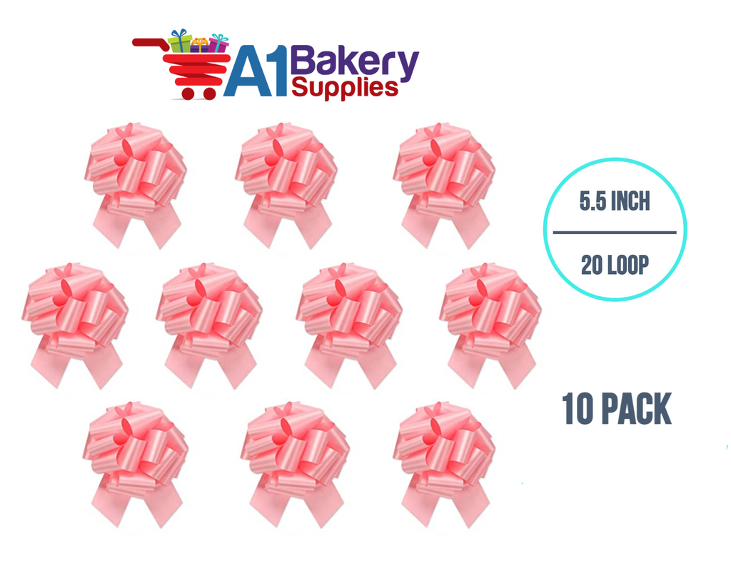A1BakerySupplies 10 Pieces Pull Bow for Gift Wrapping Gift Bows Pull Bow With Ribbon for Wedding Gift Baskets, 5.5 Inch 20 Loop in Light Pink Color