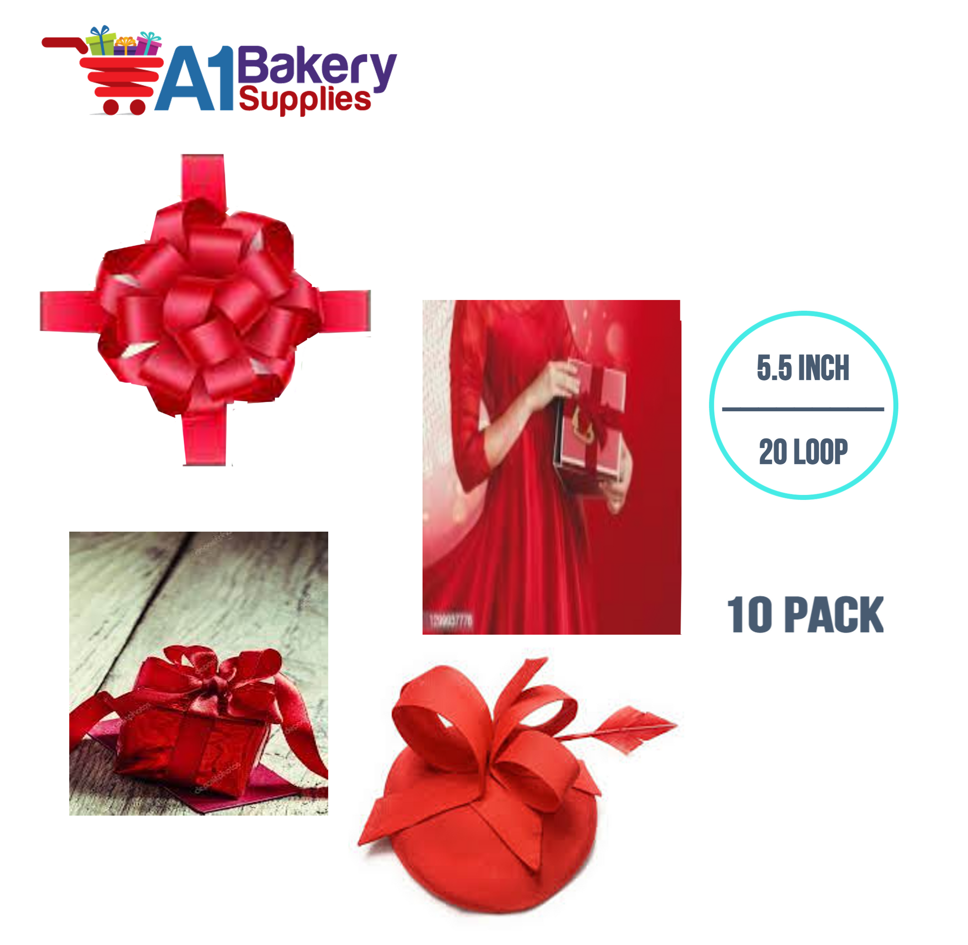 A1BakerySupplies 10 Pieces Pull Bow for Gift Wrapping Gift Bows Pull Bow With Ribbon for Wedding Gift Baskets, 5.5 Inch 20 Loop in Scarlet Red Color
