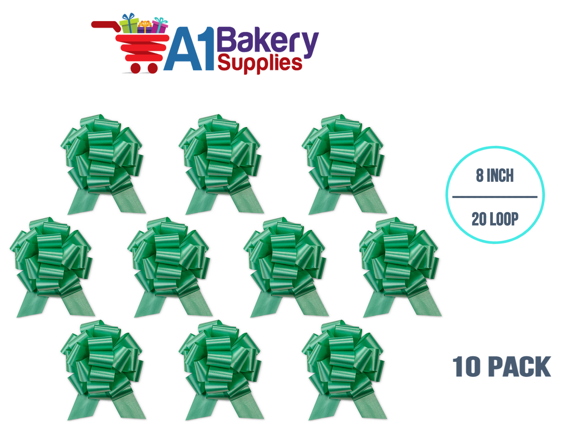 A1BakerySupplies 10 Pieces Pull Bow for Gift Wrapping Gift Bows Pull Bow With Ribbon for Wedding Gift Baskets, 8 Inch 20 Loop Emerald Green Flora Satin Color