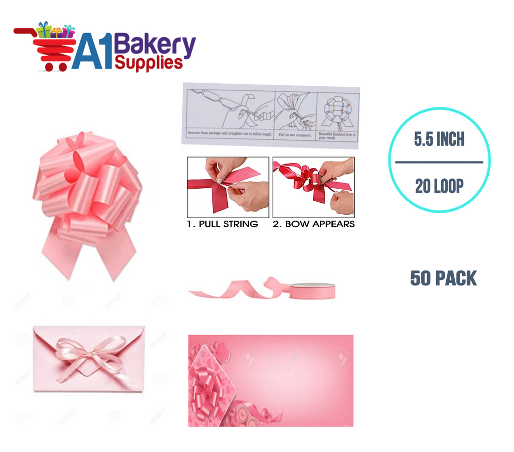 A1BakerySupplies 50 Pieces Pull Bow for Gift Wrapping Gift Bows Pull Bow With Ribbon for Wedding Gift Baskets, 5.5 Inch 20 Loop in Light Pink Color