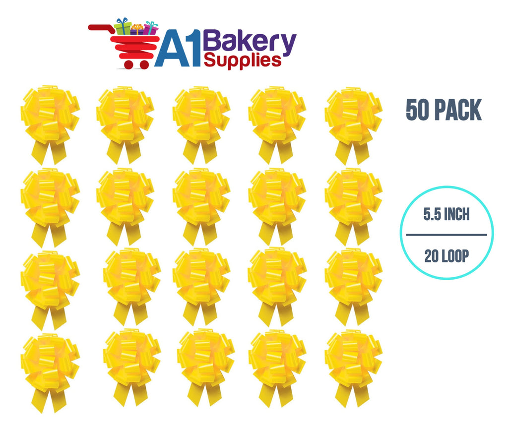 A1BakerySupplies 50 Pieces Pull Bow for Gift Wrapping Gift Bows Pull Bow With Ribbon for Wedding Gift Baskets, 5.5 Inch 20 Loop in Yellow Color