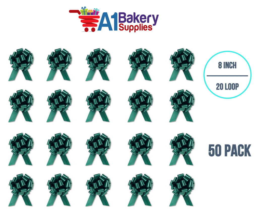 A1BakerySupplies 50 Pieces Pull Bow for Gift Wrapping Gift Bows Pull Bow With Ribbon for Wedding Gift Baskets, 8 Inch 20 Loop Hunter Green Flora Satin Color
