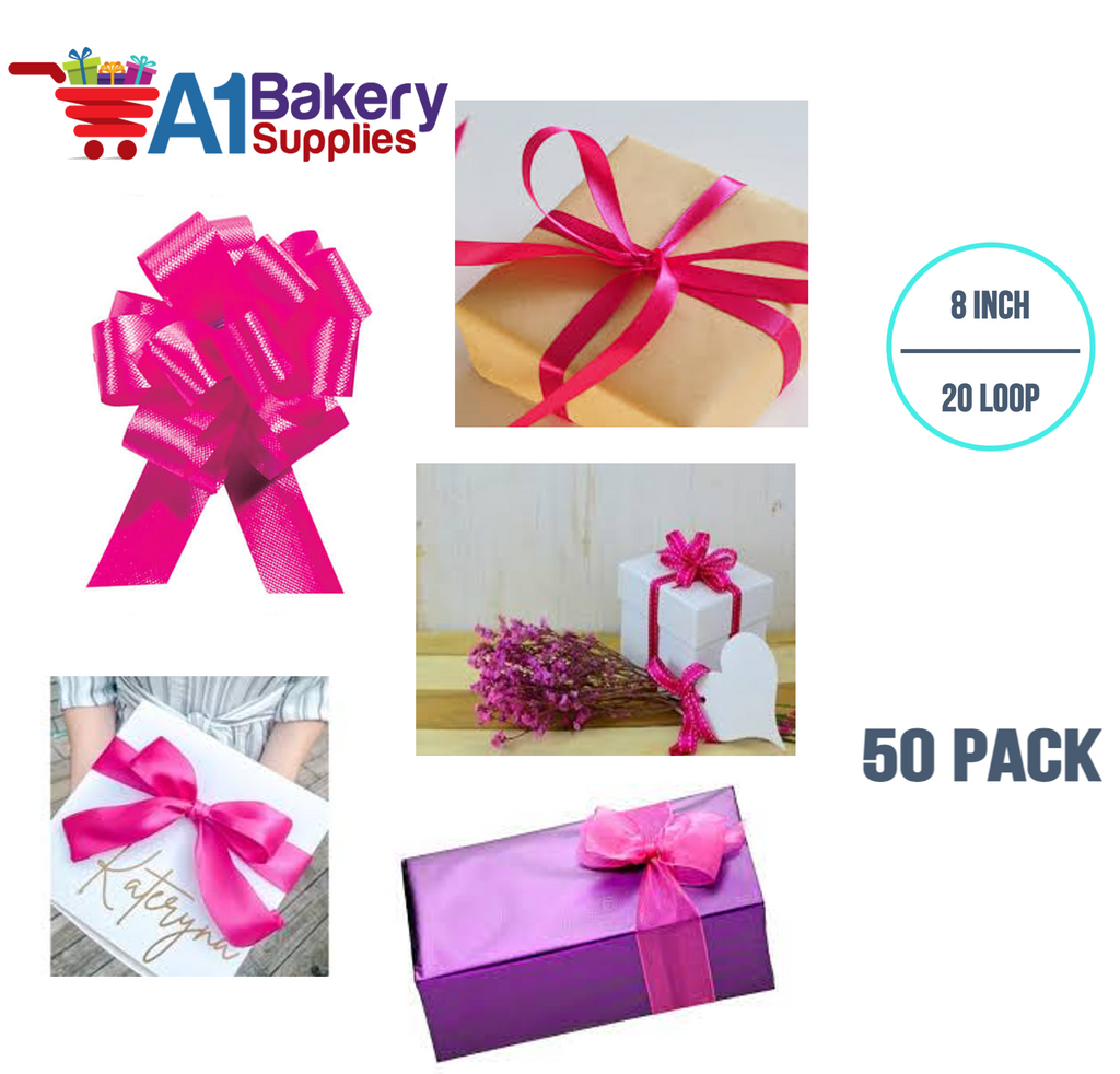 A1BakerySupplies 50 Pieces Pull Bow for Gift Wrapping Gift Bows Pull Bow With Ribbon for Wedding Gift Baskets, 8 Inch 20 Loop Pink Beauty Flora Satin Color