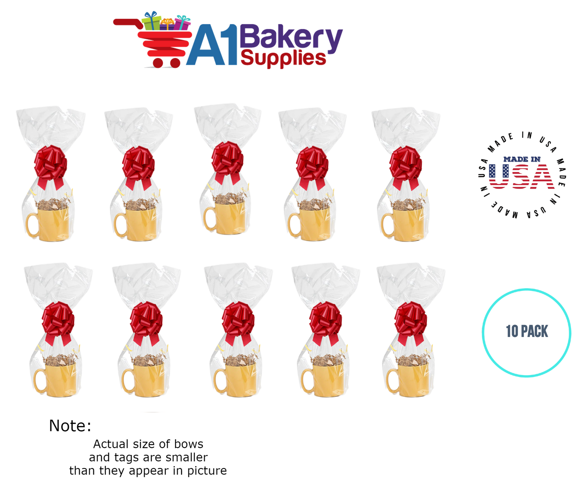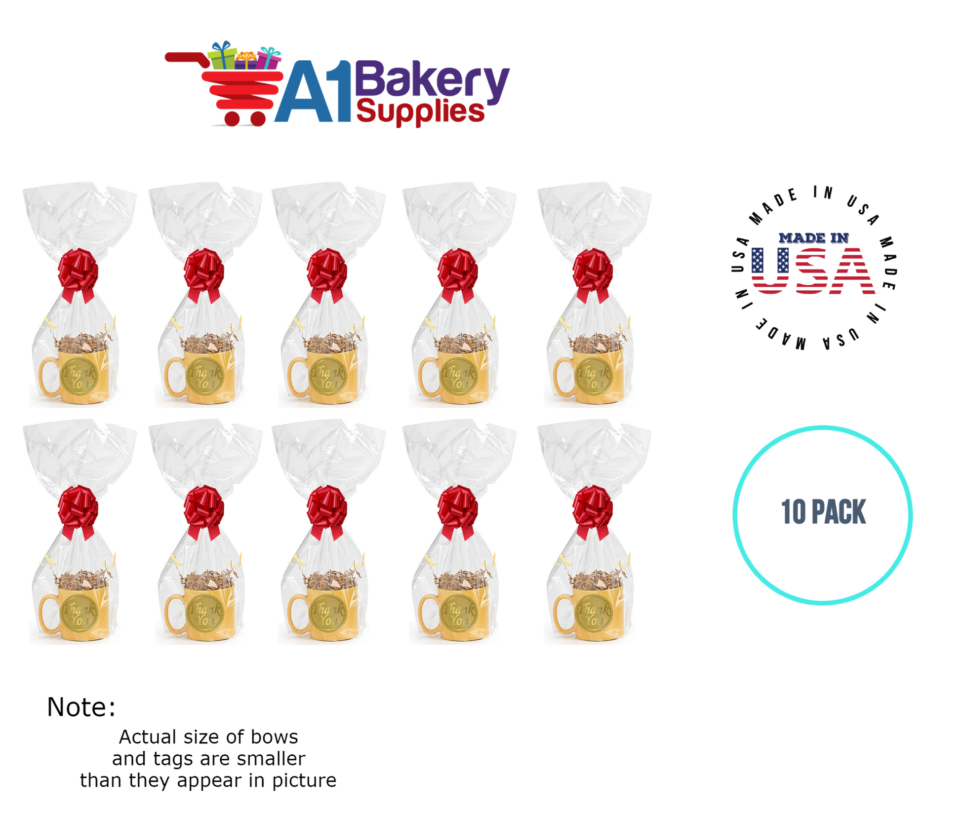 - In this order you will receive 10 Red bows , 10 thank you , 10 gift for you , 10 made with love tag and no gift basket is provided , it is only for the picture purpose and only cellophane bags are selling .