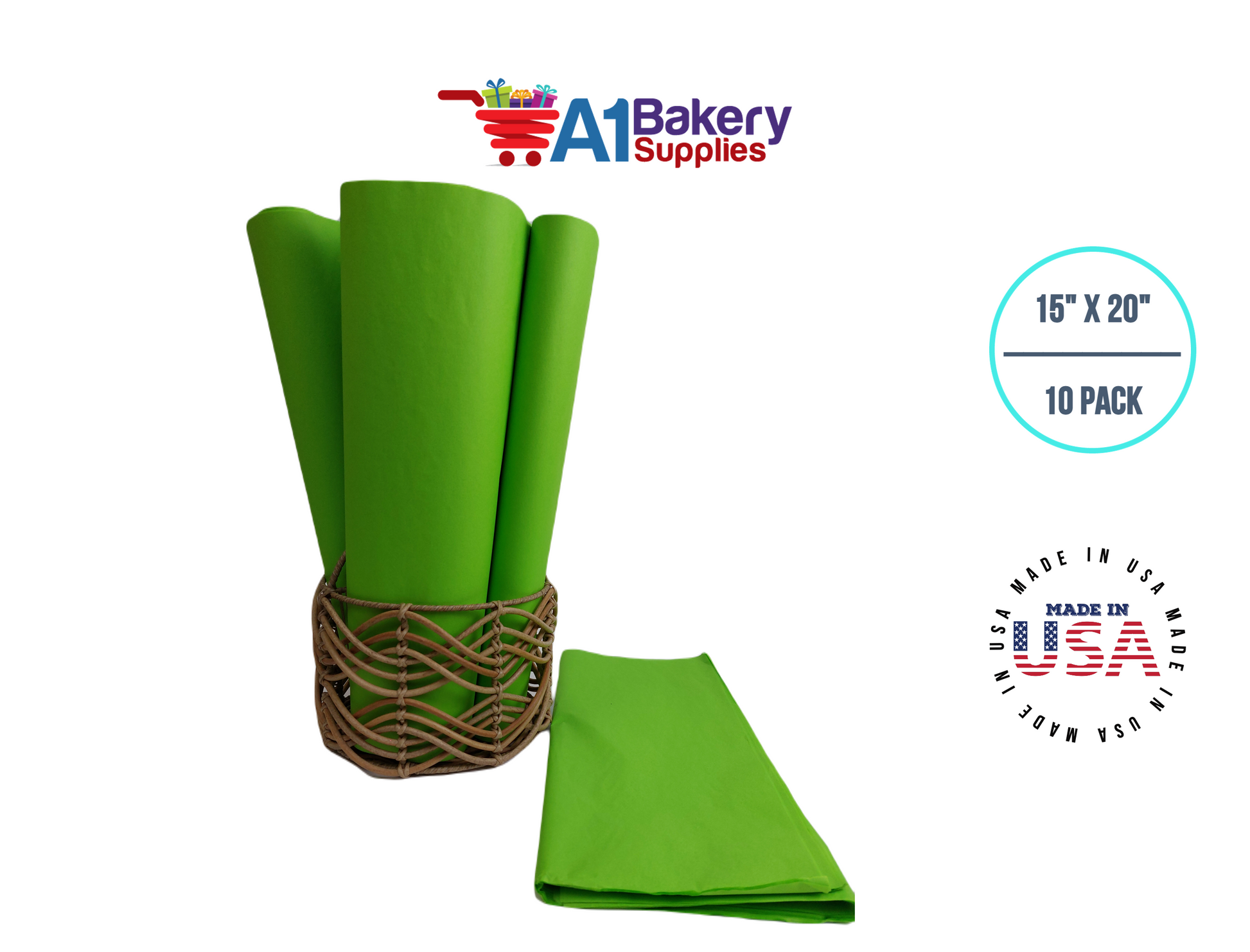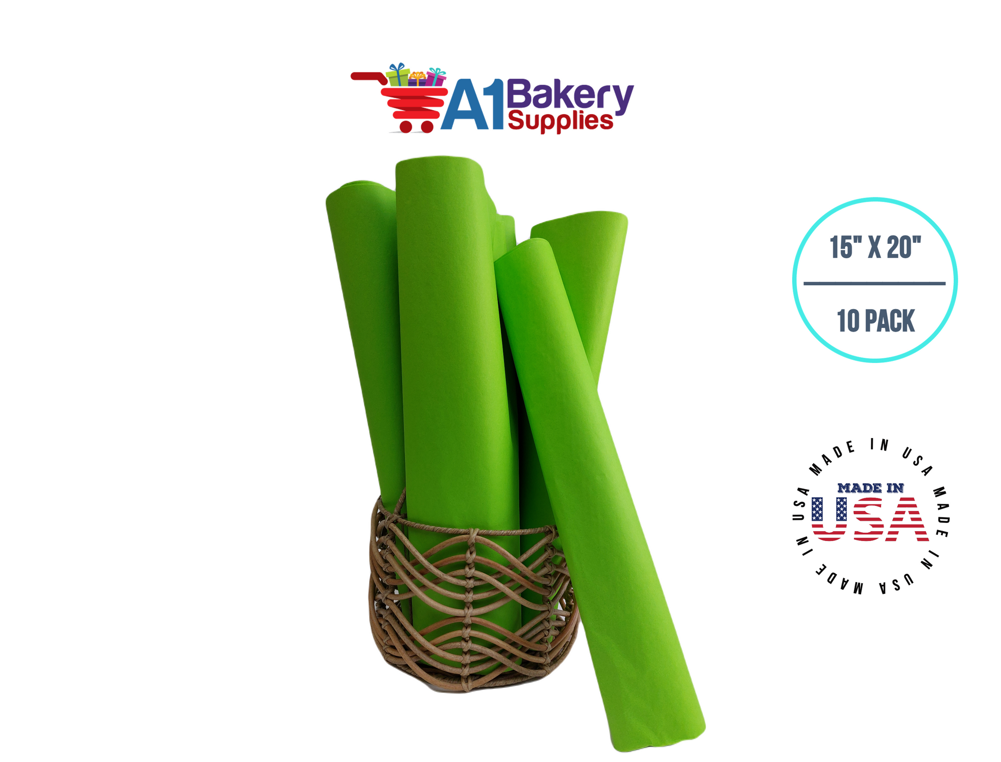 Bright Lime Tissue Paper Squares, Bulk 10 Sheets, Premium Gift Wrap and Art Supplies for Birthdays, Holidays, or Presents by A1BakerySupplies, Small 15 Inch x 20 Inch