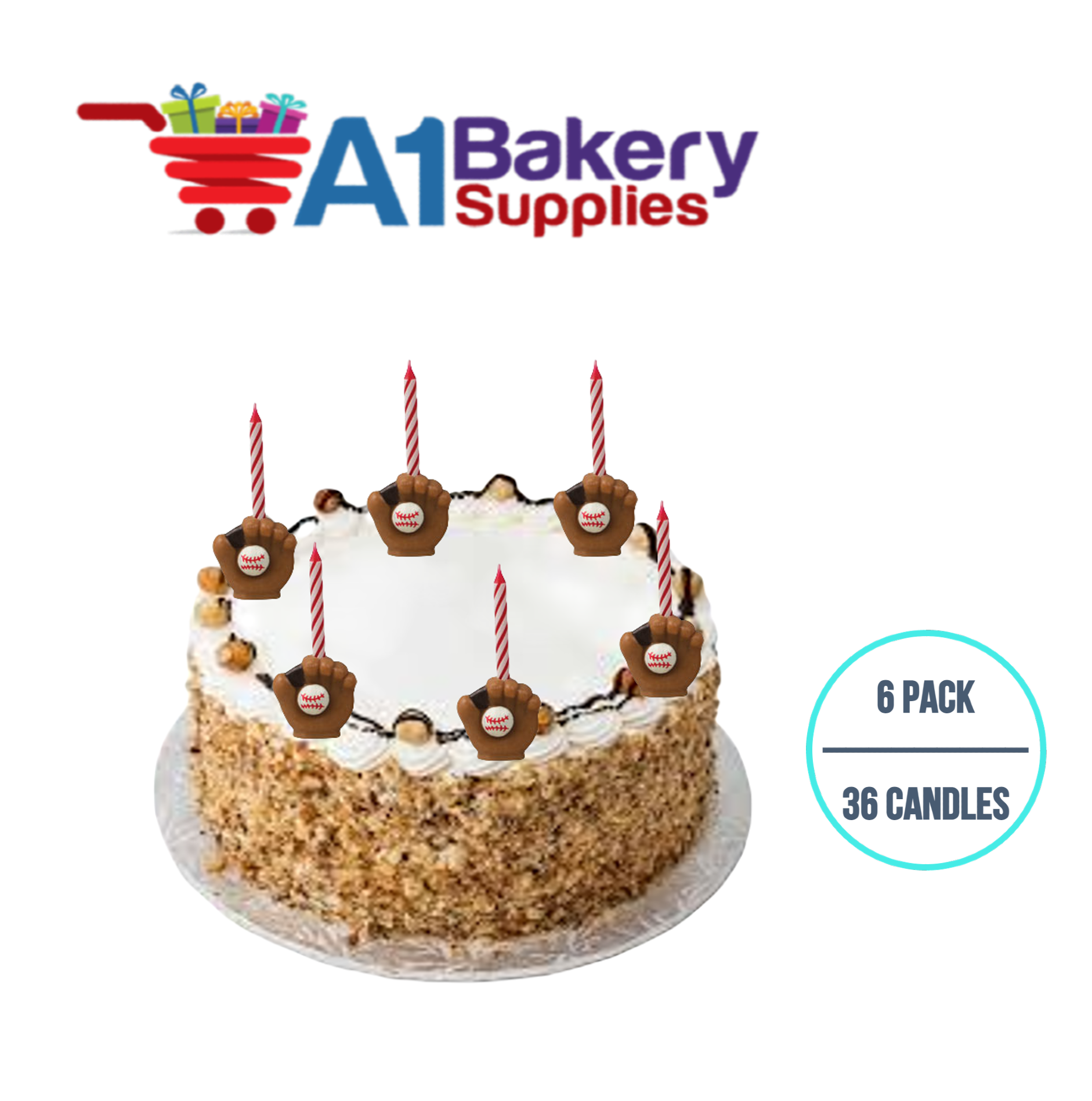 A1BakerySupplies Baseball Glove Candleholder Sets 6 pack for Birthday Cake Decorations and Anniversary