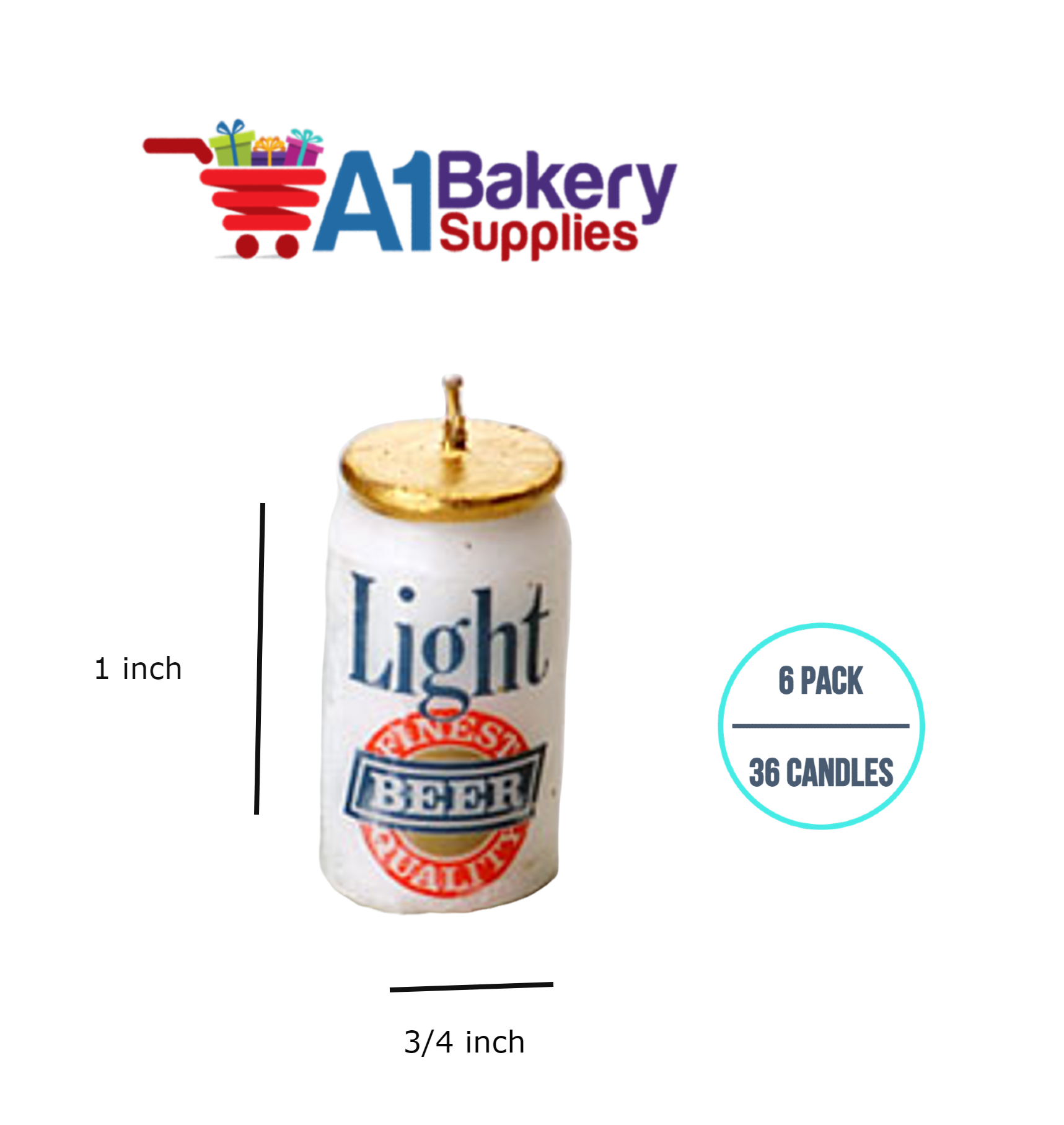 - Package Description: Beer Can Novelty 36 Candles in 6 pack, and the size is 1- 3/4 inch