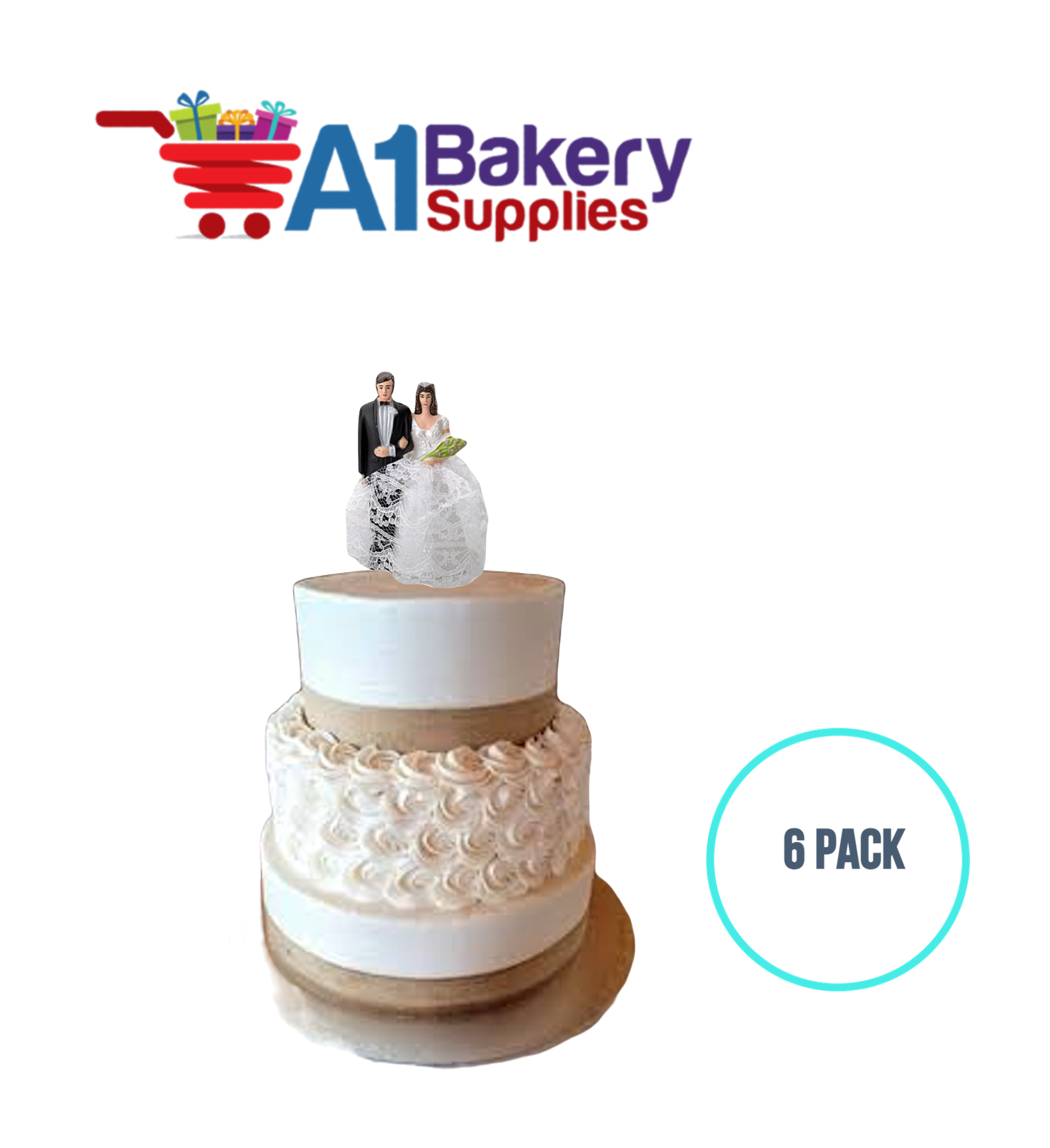 A1BakerySupplies Bride & Groom W/Lace Dress 6 pack Wedding Accessories for Birthday Cake Decorations and Marriages
