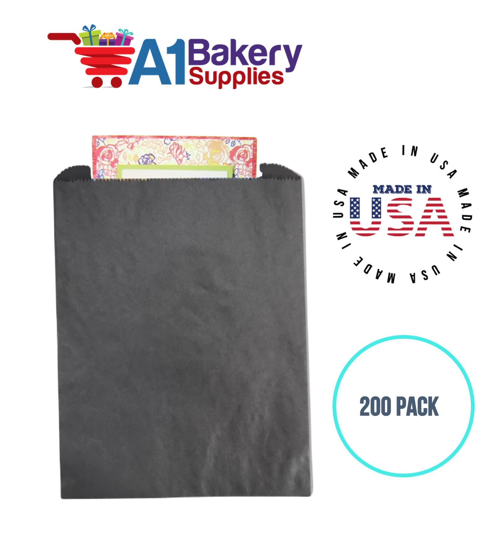 - Each Black Flat Merchandise bag measures 8 1/2 x 11inches. Each set includes 200 pack Black paper.