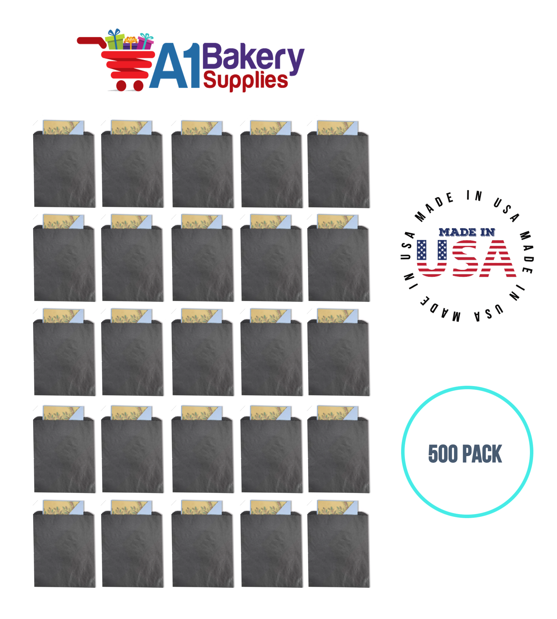 - Each Black Flat Merchandise bag measures 8 1/2 x 11 inches. Each set includes 500 pack Black paper.