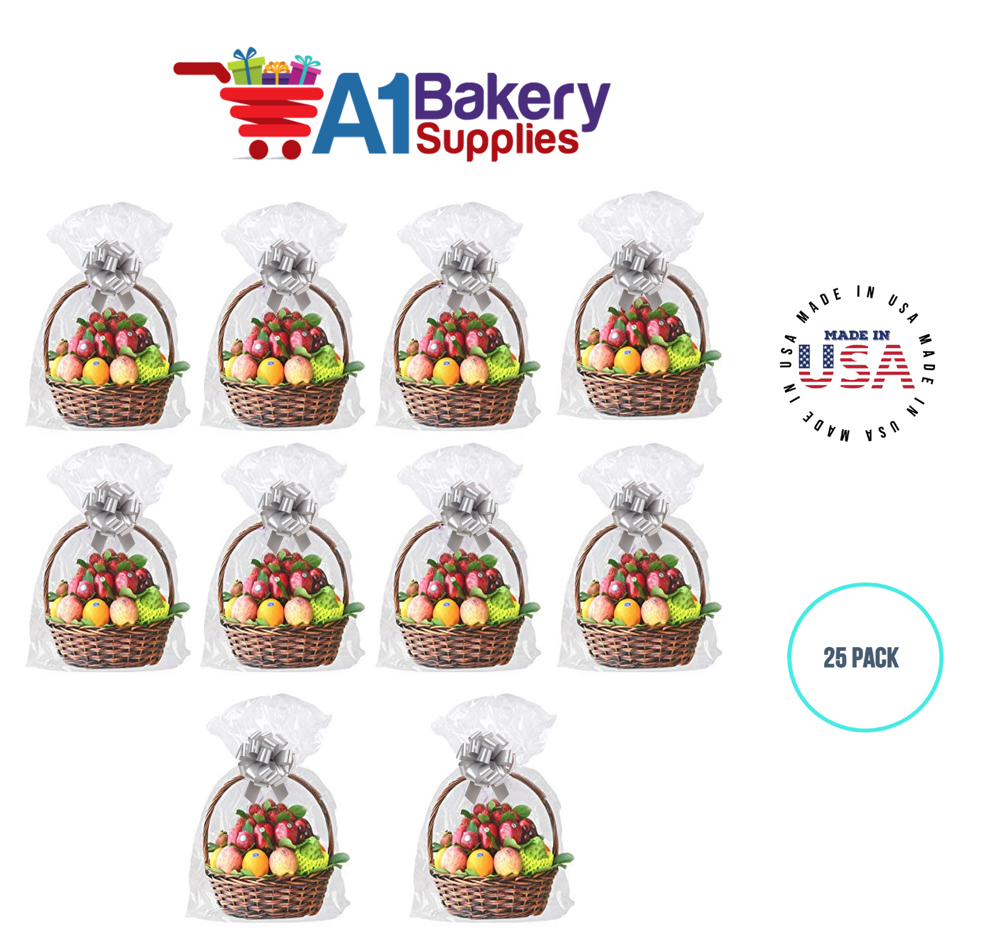 BOPP Sealable Cellophane Bags and Clear Gift Basket Wrap Packaging, 20 in x 30 in, Clear Cello Wrapping for Baby Shower, Wedding Party, or Event Giveaways, 25 Pack