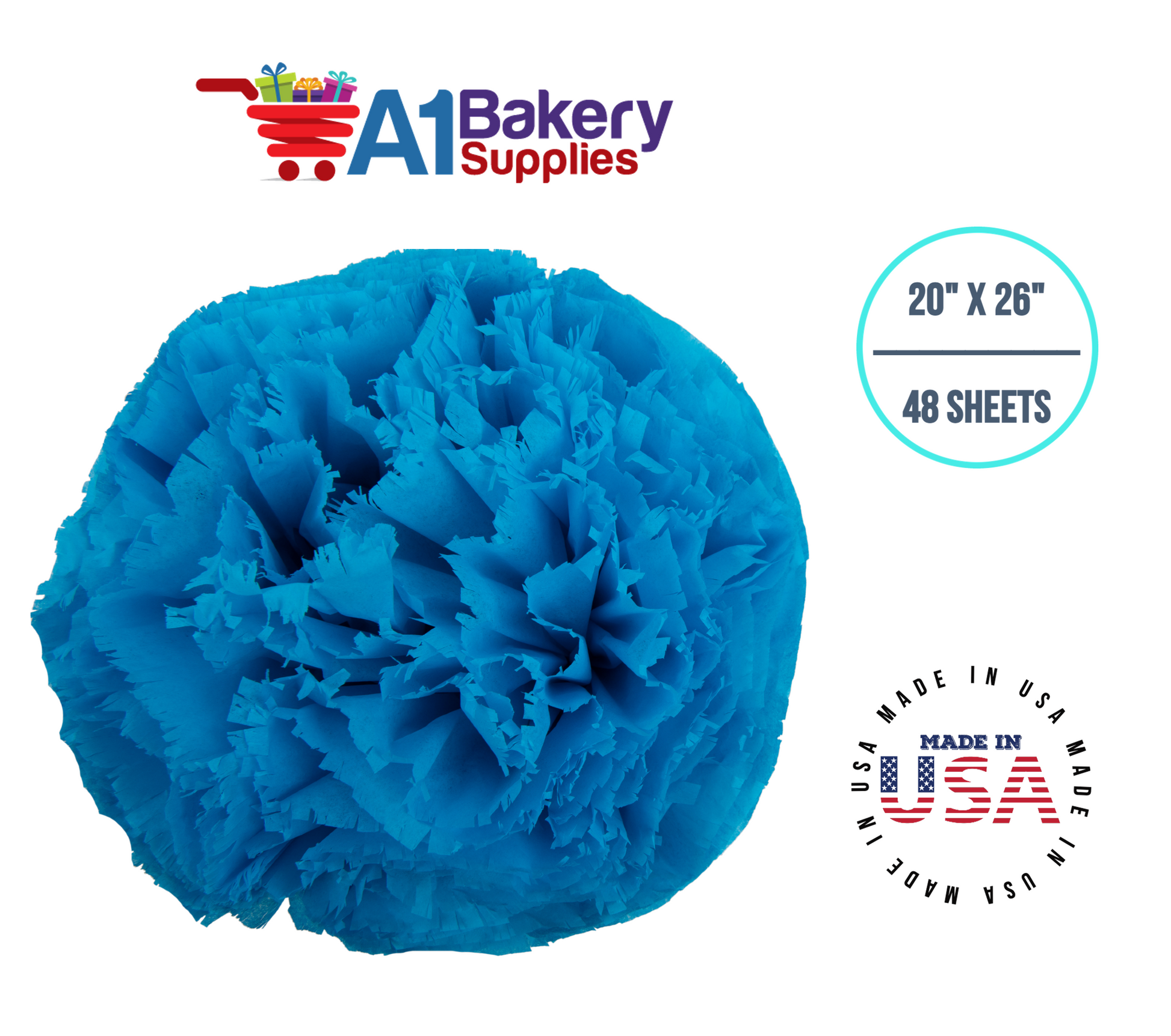 Turquoise Blue Tissue Paper Squares, Bulk 48 Sheets, Premium Gift Wrap and Art Supplies for Birthdays, Holidays, or Presents by A1BakerySupplies, Medium 20 Inch x 26 Inch