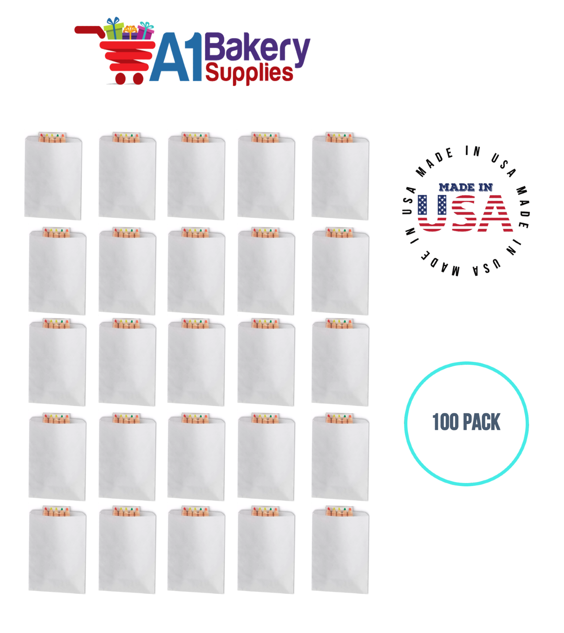 - Each White Flat Merchandise bag measures 10" x 13" inches. Each set includes 100 pack White paper.