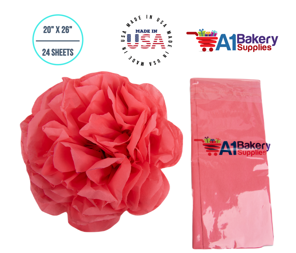 Coral Rose Color Gift Wrap Tissue Paper size 20 In X 26 In. Each Pack contains 24 sheets. These papers are made of Premium Quality and good for Gift Package, Gift Wrap, Jewel Wrap, and Craft Work