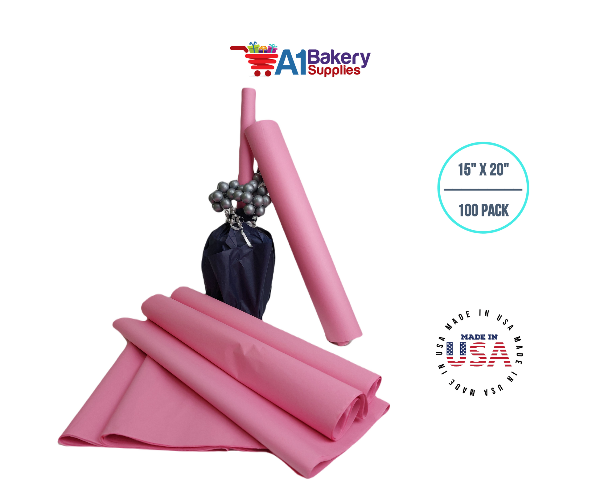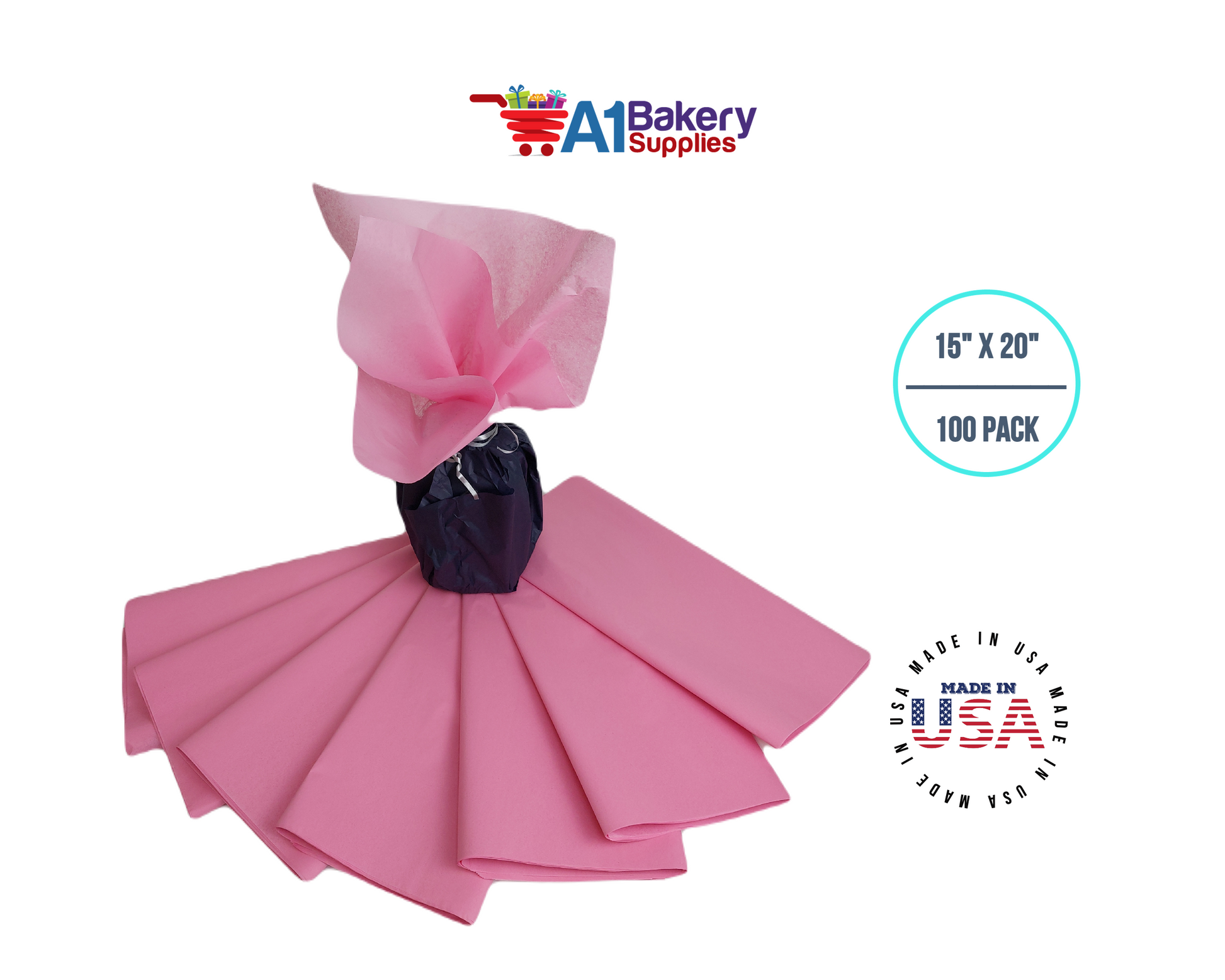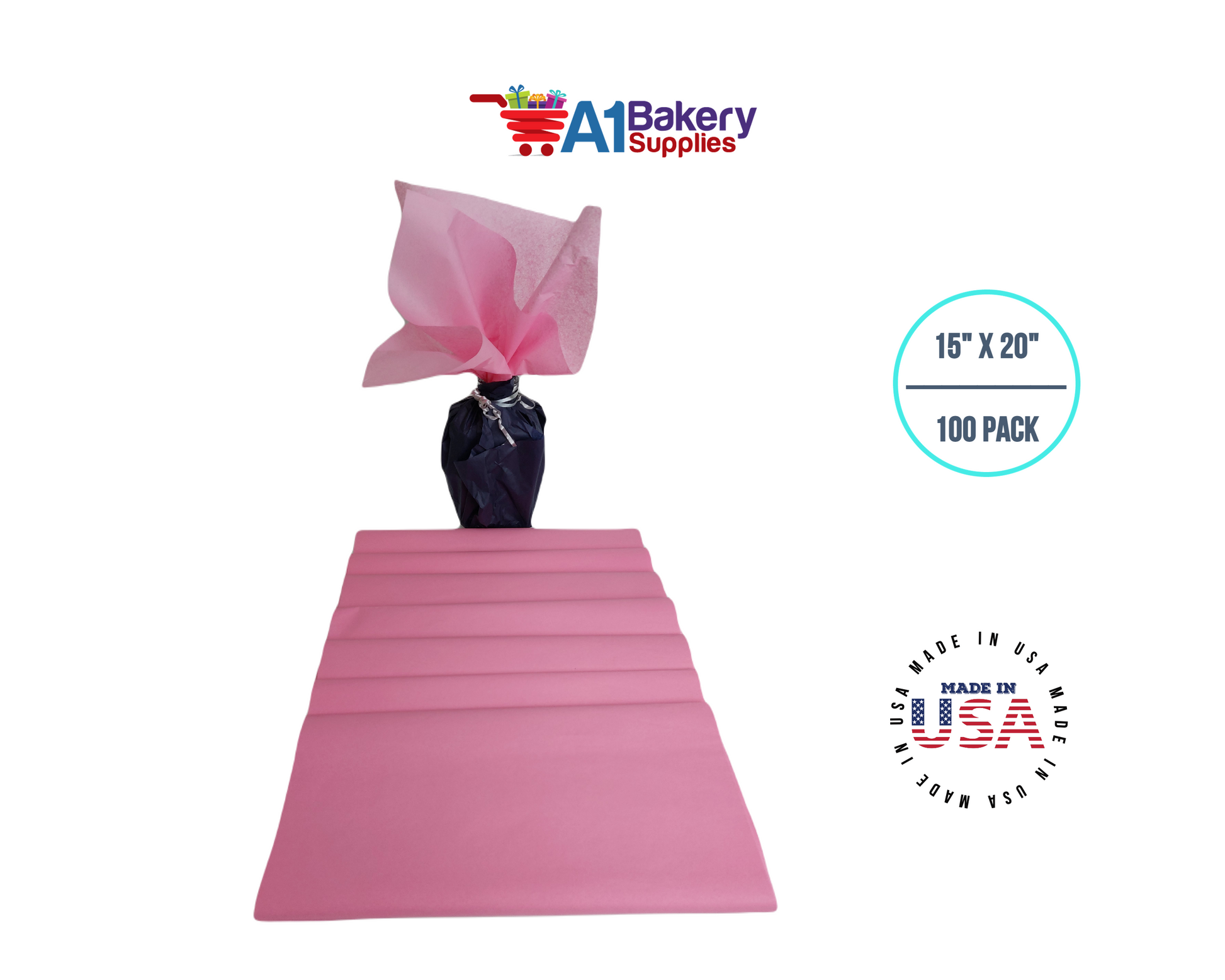 Dark Pink Tissue Paper Squares, Bulk 100 Sheets, Premium Gift Wrap and Art Supplies for Birthdays, Holidays, or Presents by A1BakerySupplies, Large 15 Inch x 20 Inch