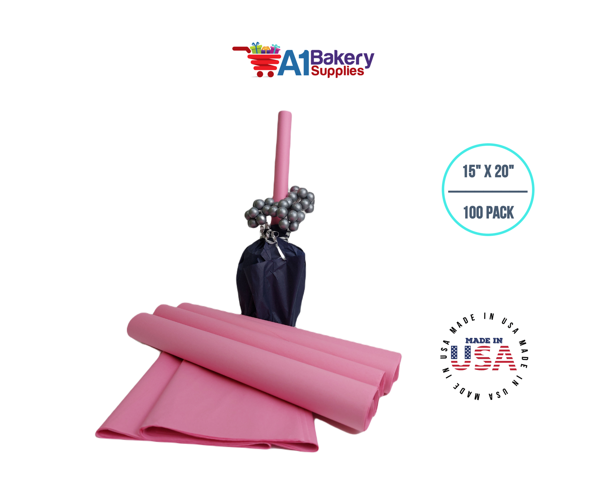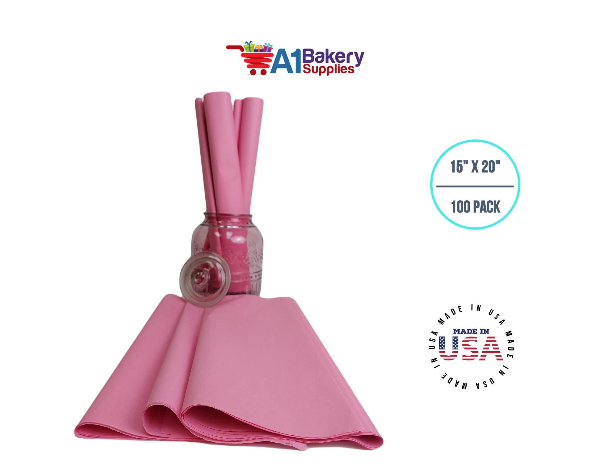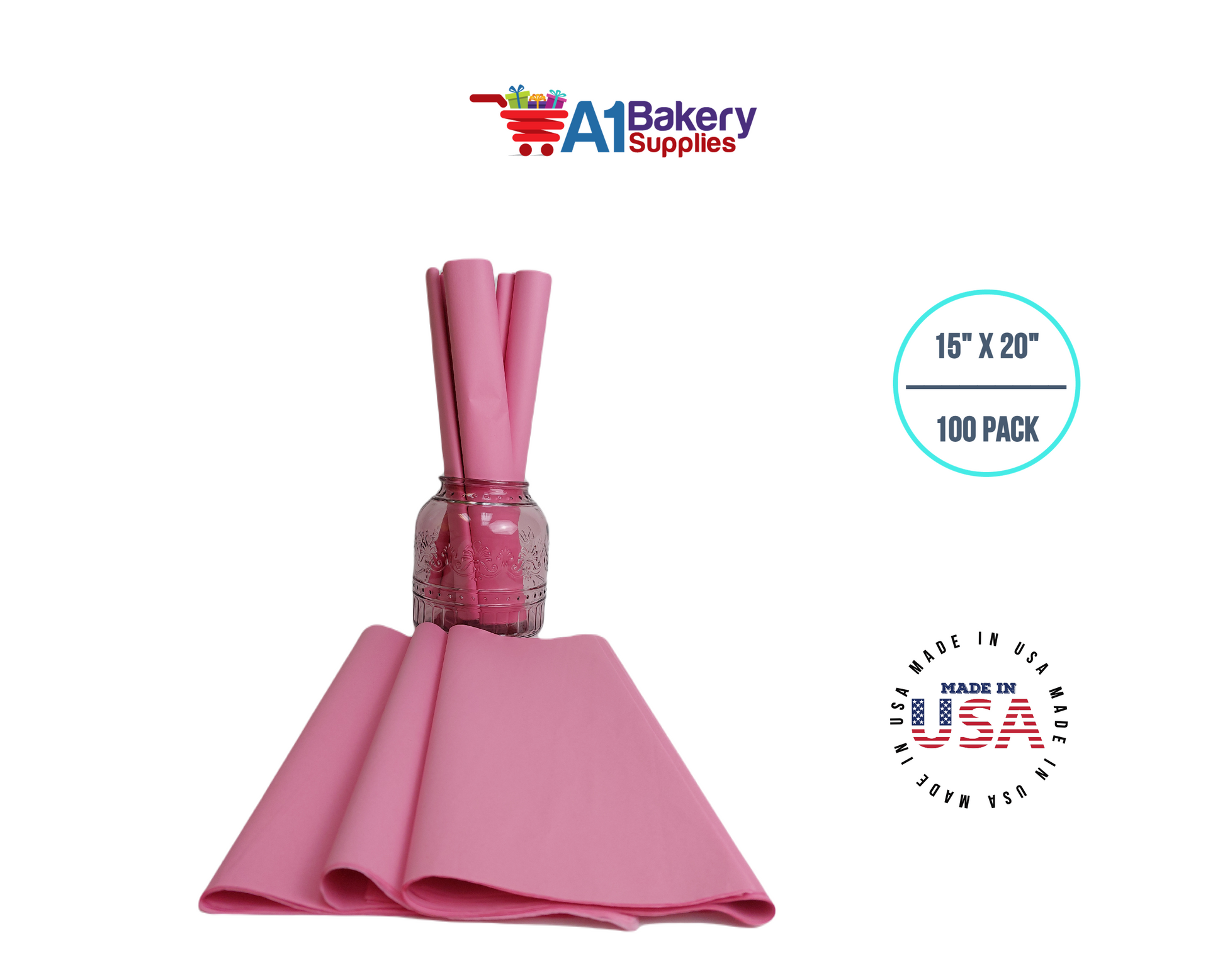 Dark Pink Tissue Paper Squares, Bulk 100 Sheets, Premium Gift Wrap and Art Supplies for Birthdays, Holidays, or Presents by A1BakerySupplies, Large 15 Inch x 20 Inch