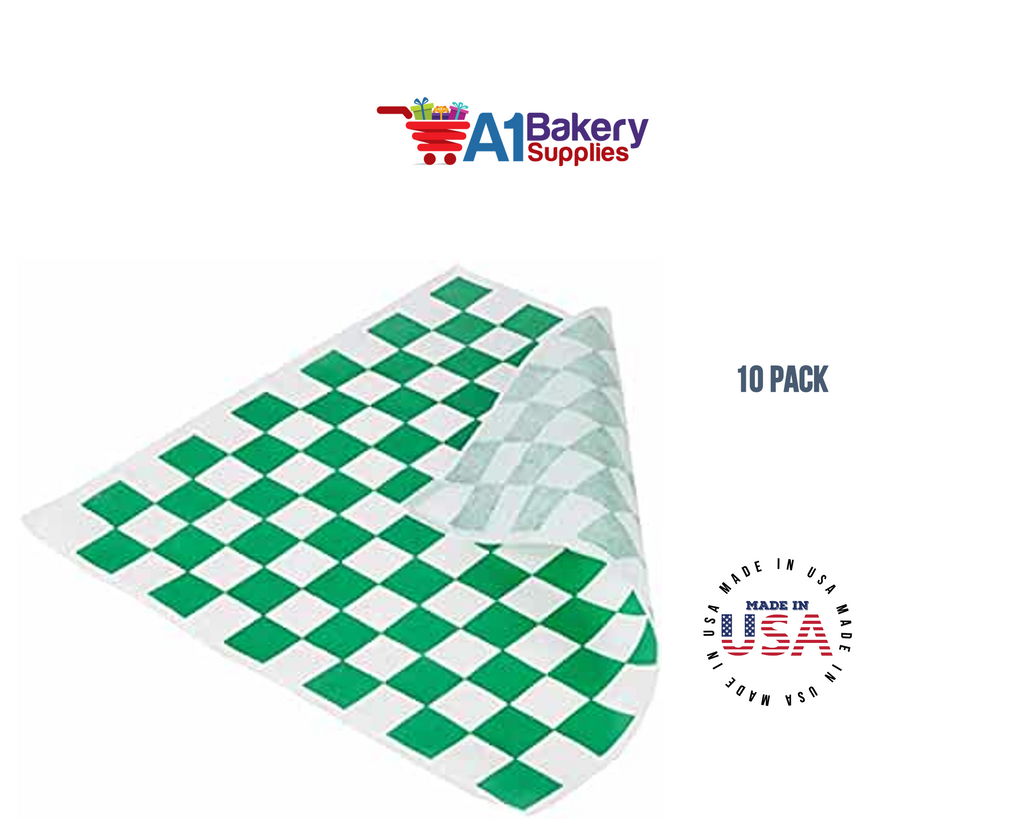 Deli Sandwich Wraps Basket Liners and Food Wrapping Liner Papers by A1 Bakery Supplies of 10 pack (Green checked)