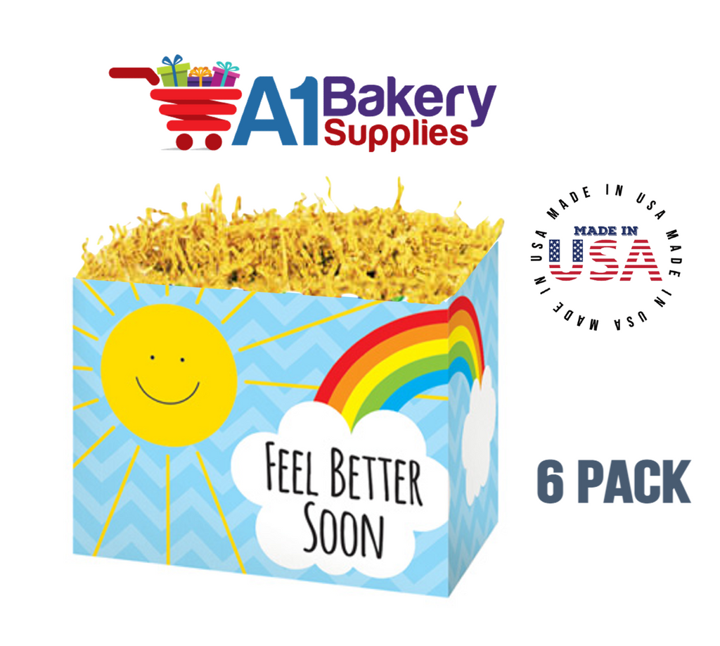 - Each Box comes with totally 6 Pack Small Boxes . Each Feel Better Sunshine Basket Box Measures 6.75 (Length) x 4 (Width) x 5 (Height)