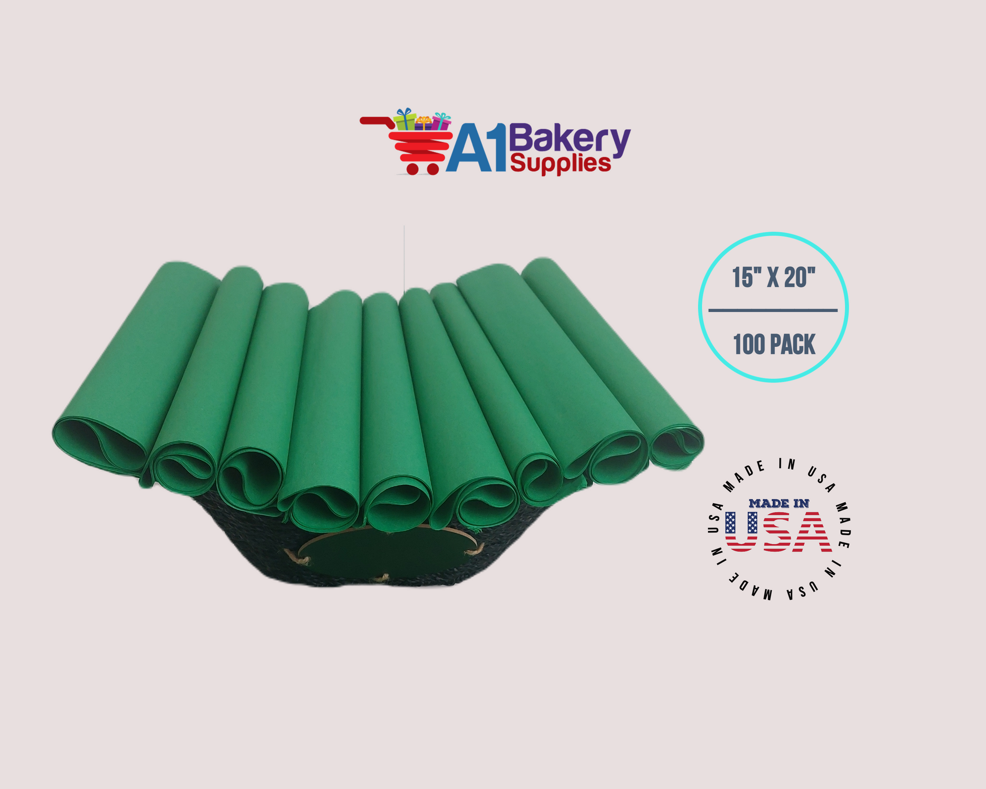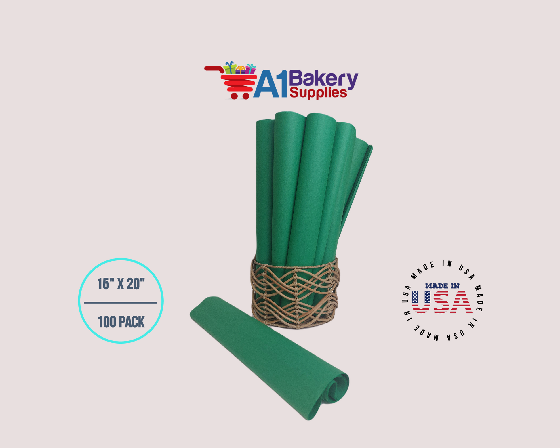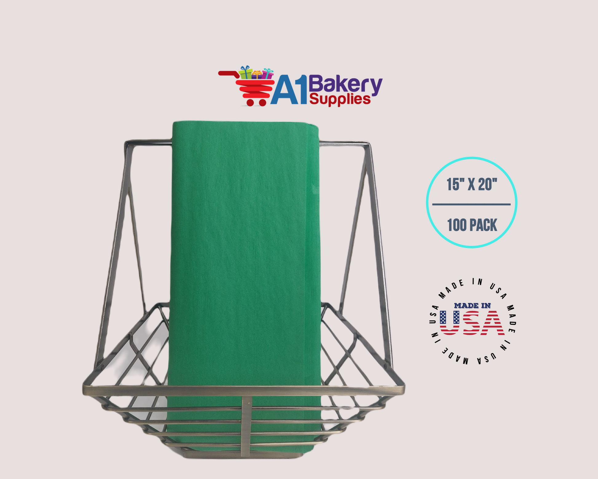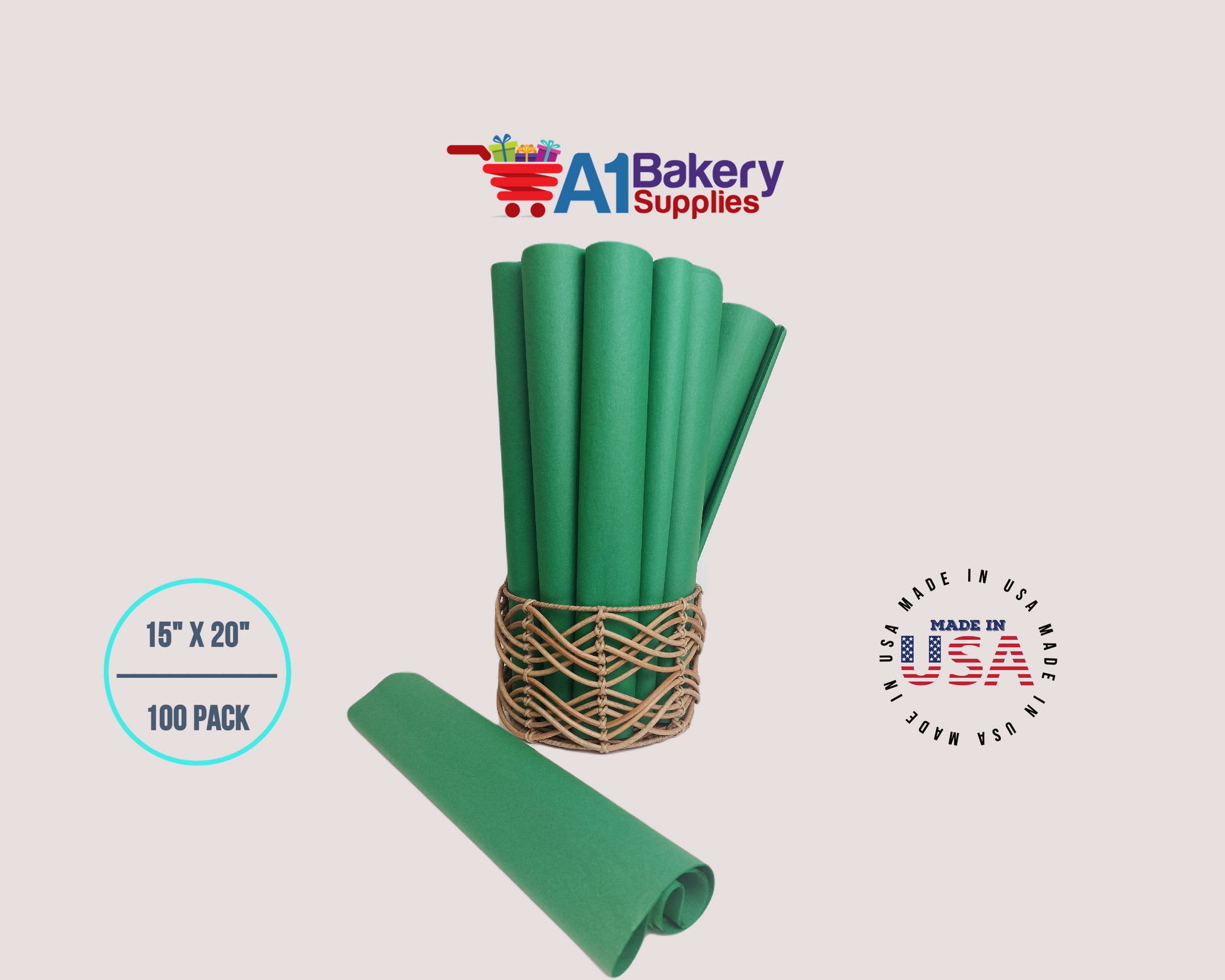 Festive Gren Tissue Paper Squares, Bulk 100 Sheets, Premium Gift Wrap and Art Supplies for Birthdays, Holidays, or Presents by A1BakerySupplies, Large 15 Inch x 20 Inch