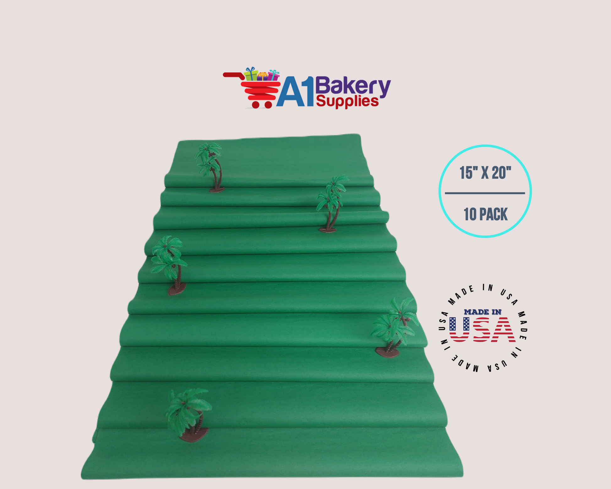 Festive Gren Tissue Paper Squares, Bulk 10 Sheets, Premium Gift Wrap and Art Supplies for Birthdays, Holidays, or Presents by A1BakerySupplies, Large 15 Inch x 20 Inch