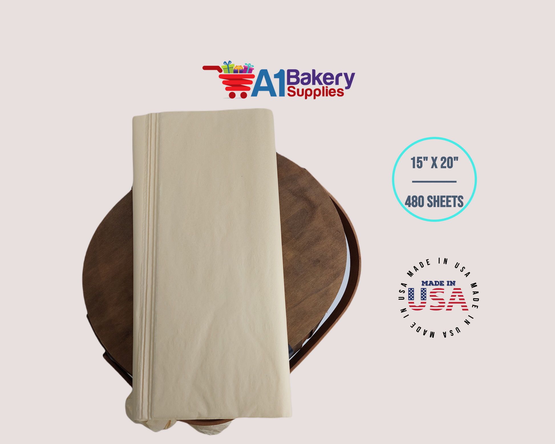 French Vanilla Tissue Paper Squares, Bulk 480 Sheets, Premium Gift Wrap and Art Supplies for Birthdays, Holidays, or Presents by A1BakerySupplies, Large 15 Inch x 20 Inch