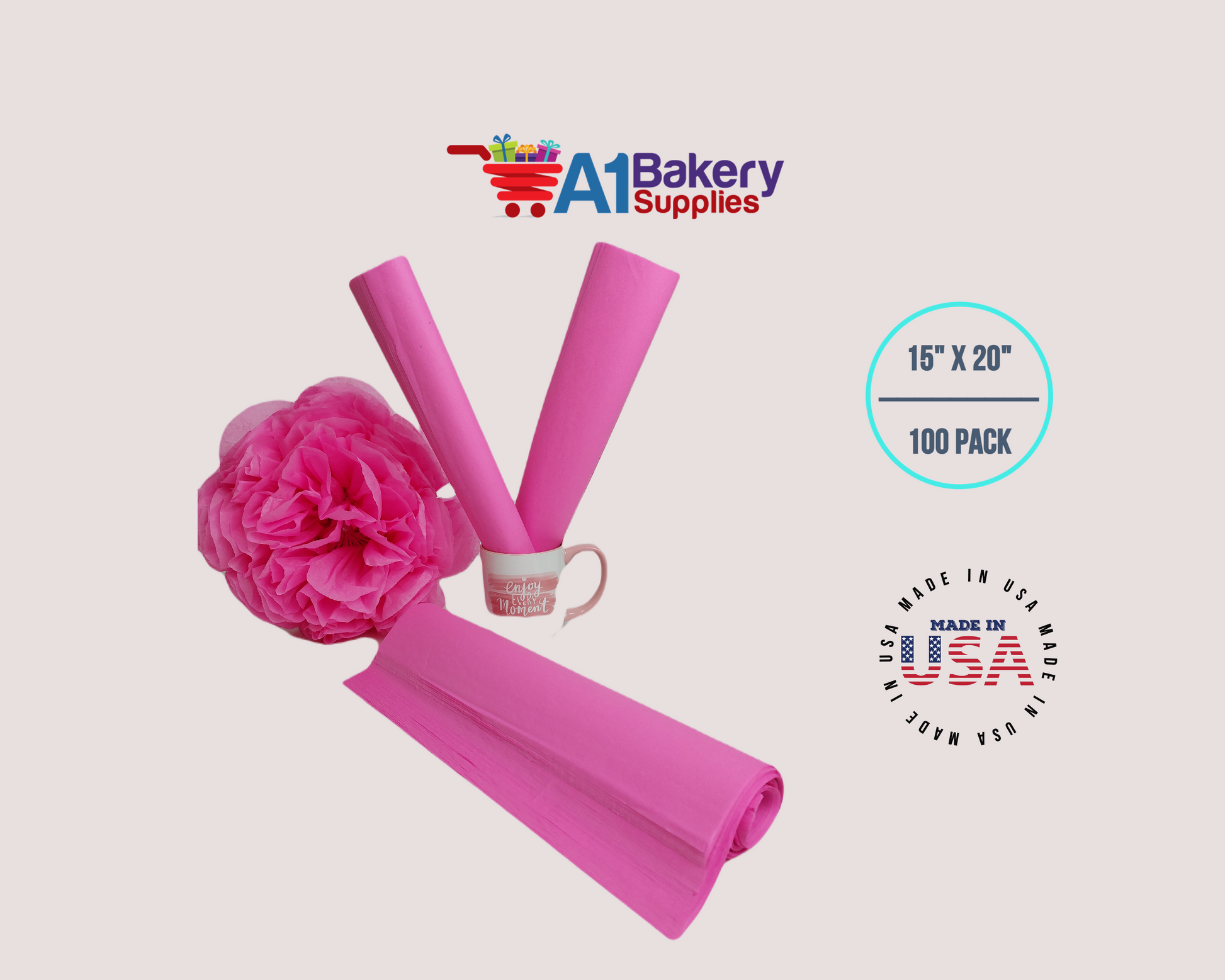 Fuchsia PinkTissue Paper Squares, Bulk 100 Sheets, Premium Gift Wrap and Art Supplies for Birthdays, Holidays, or Presents by A1BakerySupplies, Large 15 Inch x 20 Inch