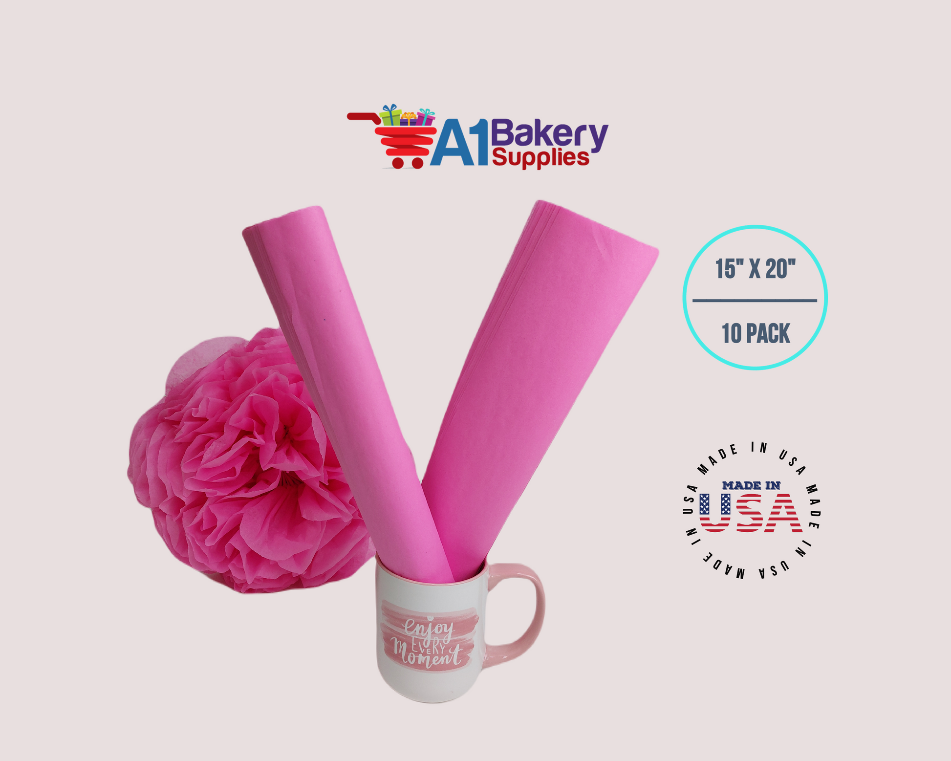 Fuchsia PinkTissue Paper Squares, Bulk 10 Sheets, Premium Gift Wrap and Art Supplies for Birthdays, Holidays, or Presents by A1BakerySupplies, Large 15 Inch x 20 Inch