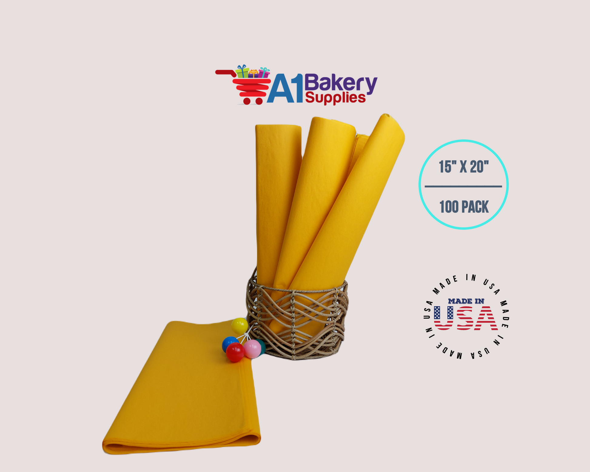 Goldenrod Tissue Paper Squares, Bulk 100 Sheets, Premium Gift Wrap and Art Supplies for Birthdays, Holidays, or Presents by A1BakerySupplies, Medium 15 Inch x 20 Inch