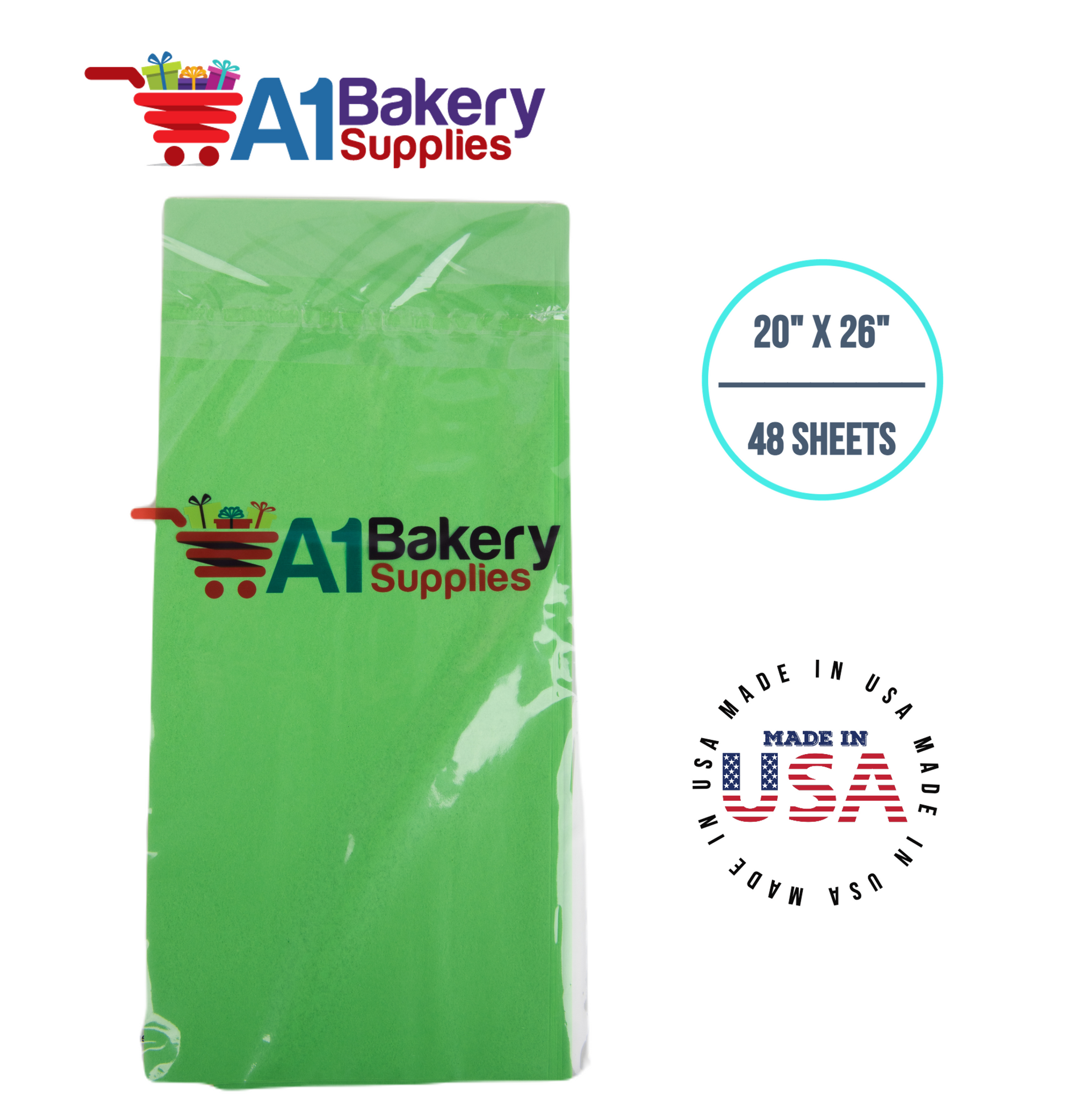 Groovy Green Tissue Paper Squares, Bulk 48 Sheets, Premium Gift Wrap and Art Supplies for Birthdays, Holidays, or Presents by A1BakerySupplies, Medium 20 Inch x 26 Inch