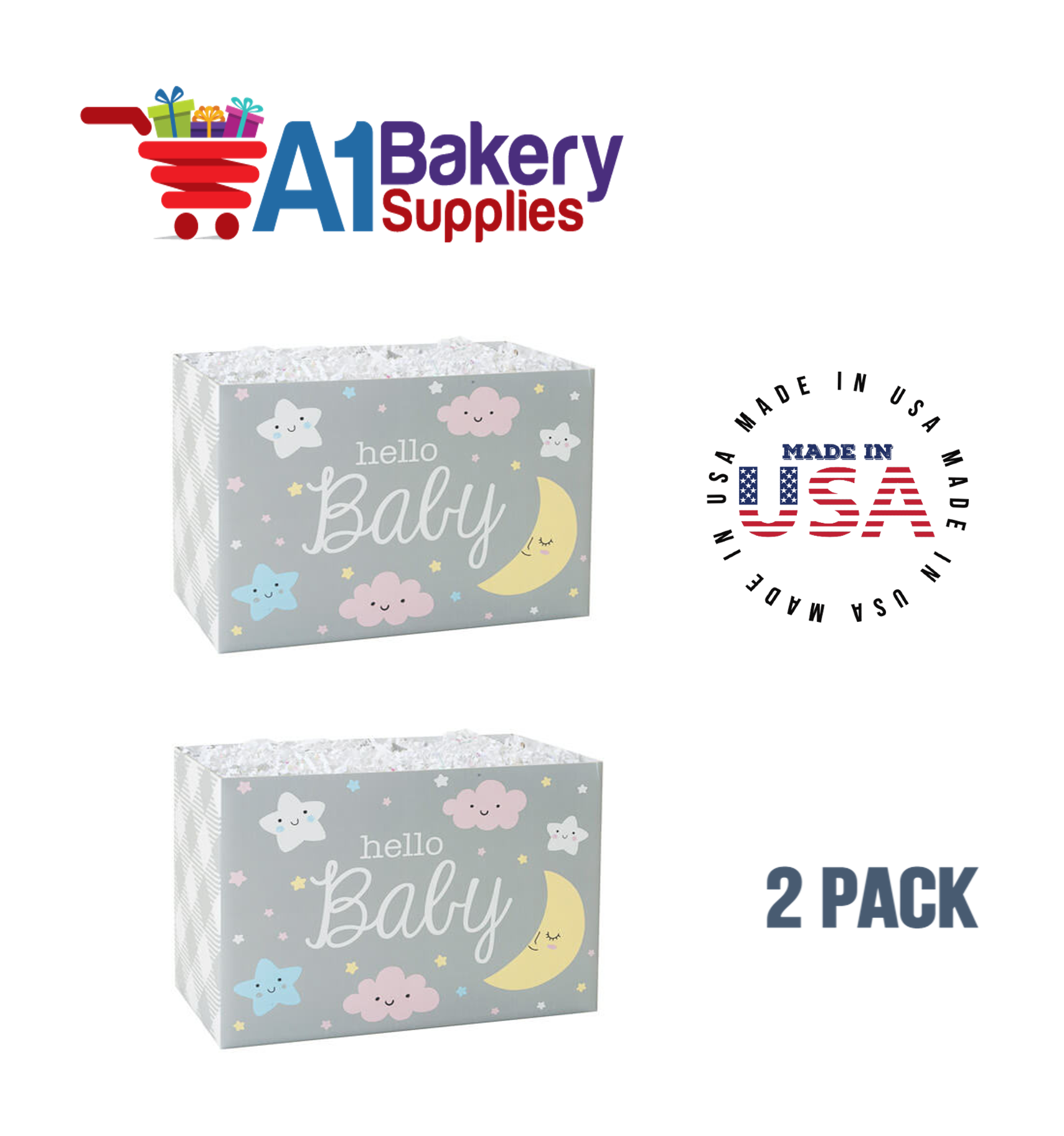 - Each Box comes with totally 2 Pack Small Boxes . Each Hello Baby Basket Box Measures 6.75 (Length) x 4 (Width) x 5 (Height)