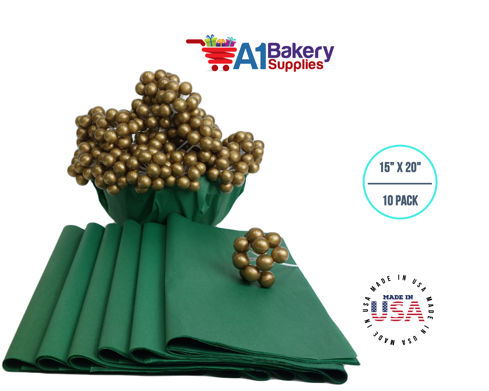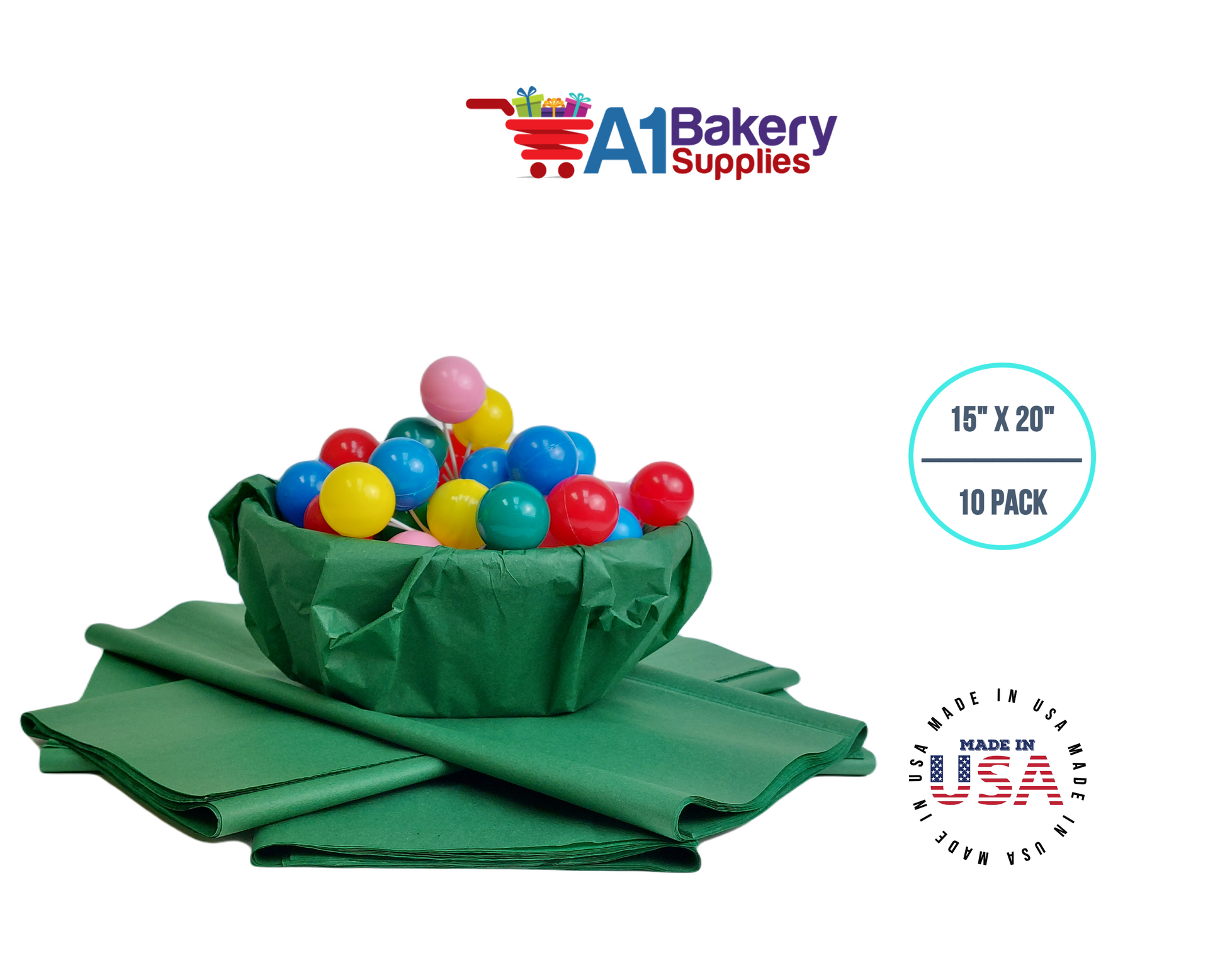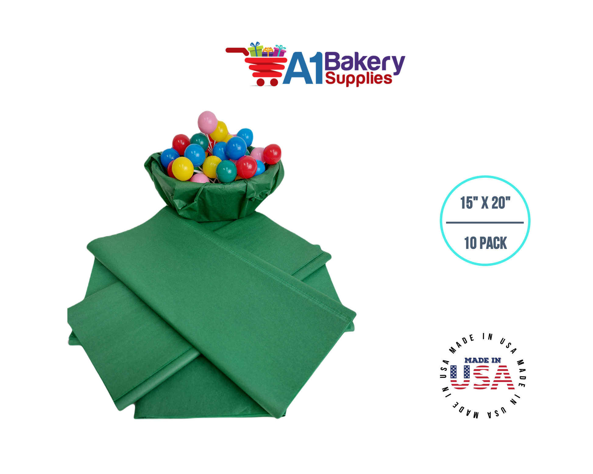 Holiday Green Tissue Paper Squares, Bulk 10 Sheets, Premium Gift Wrap and Art Supplies for Birthdays, Holidays, or Presents by A1BakerySupplies, Large 15 Inch x 20 Inch